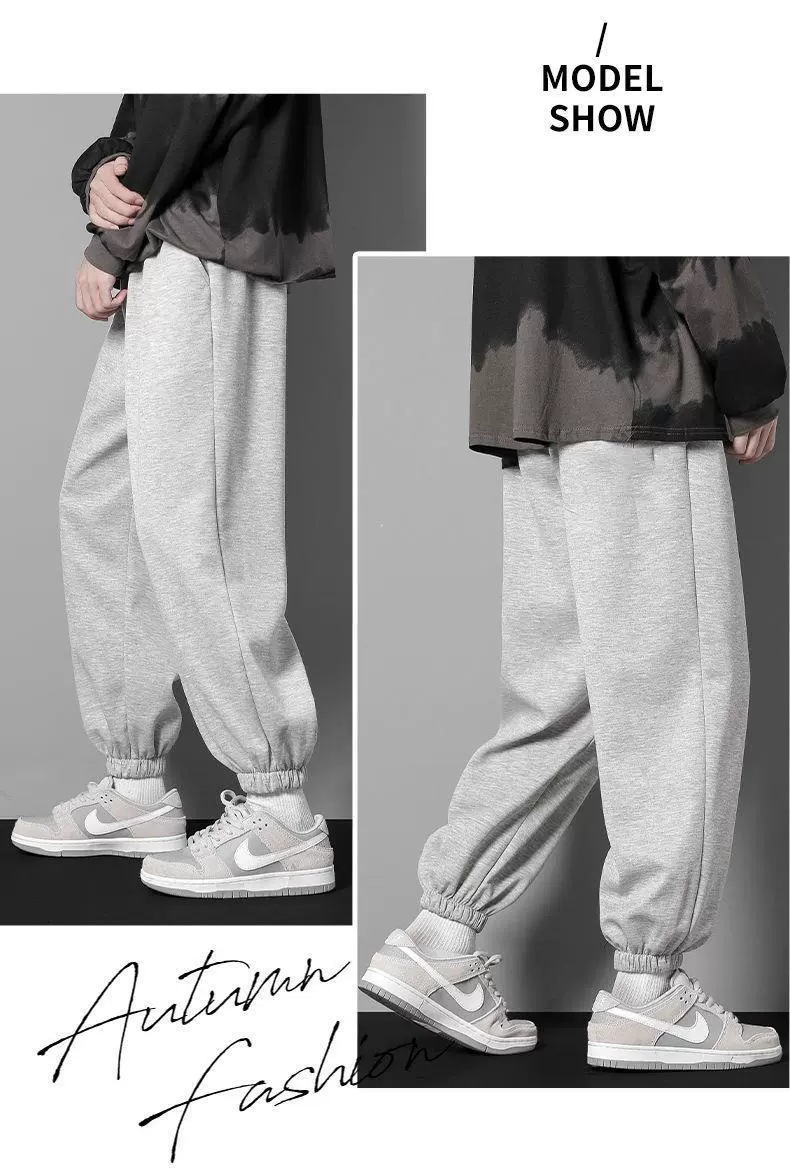 가을과 겨울 스웨트 팬츠 남성 홍콩 스타일 패션 브랜드 플러스 사이즈 느슨한 스트레이트 드로 스트링 발목 묶인 캐주얼 팬츠 학생 농구 스포츠 바지