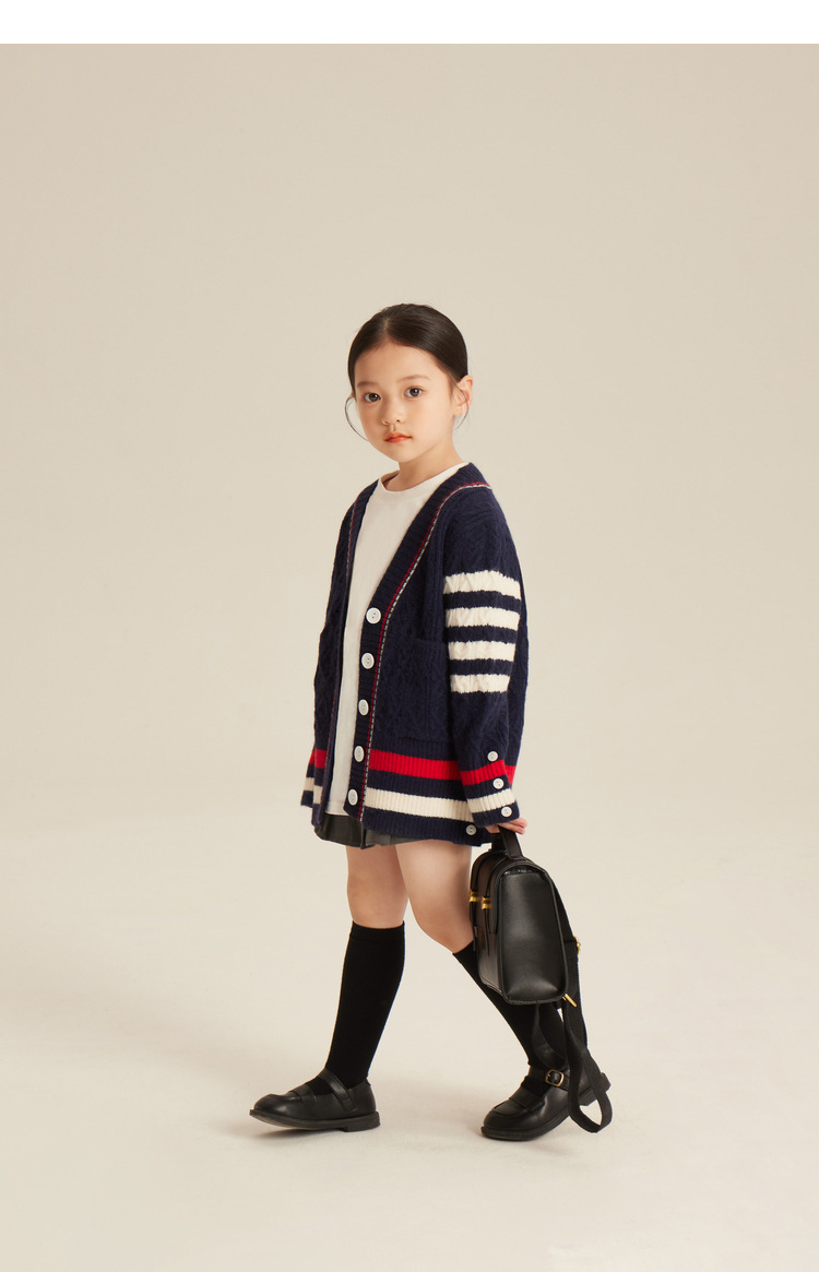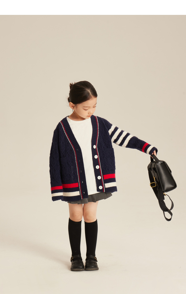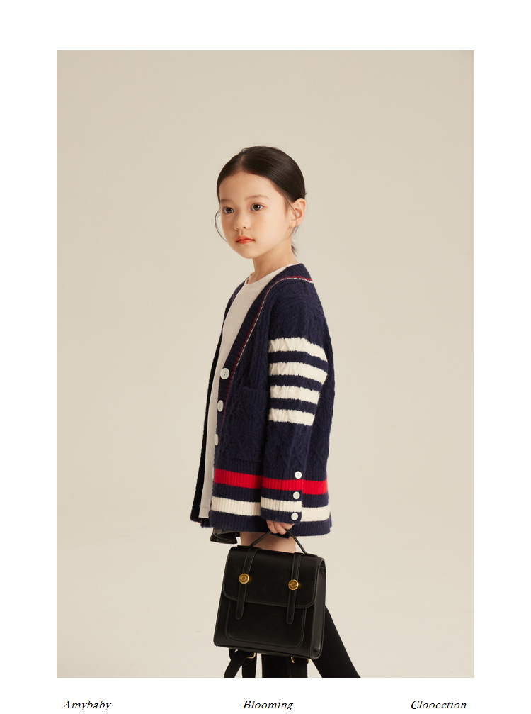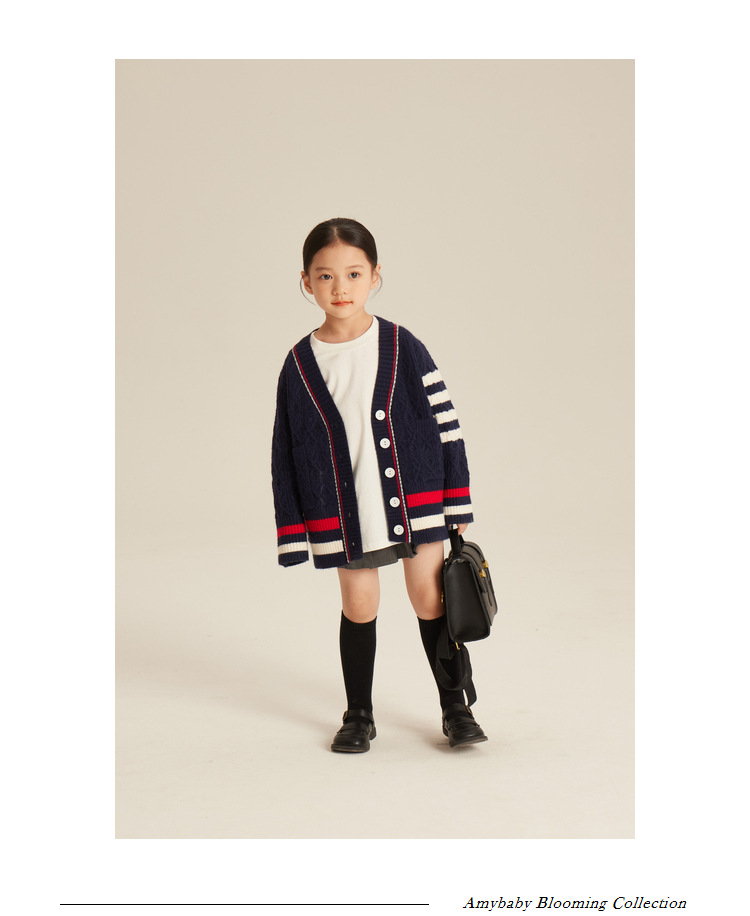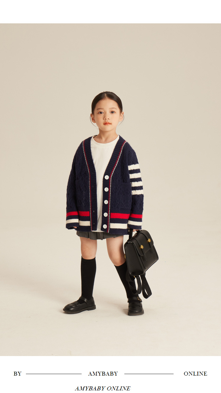 Amybaby 소녀의 코트 2024 새로운 봄과 가을 색상 일치 느슨한 서양식 긴 니트 카디건 스웨터스토어 가기