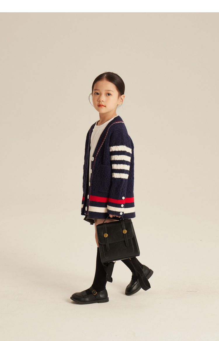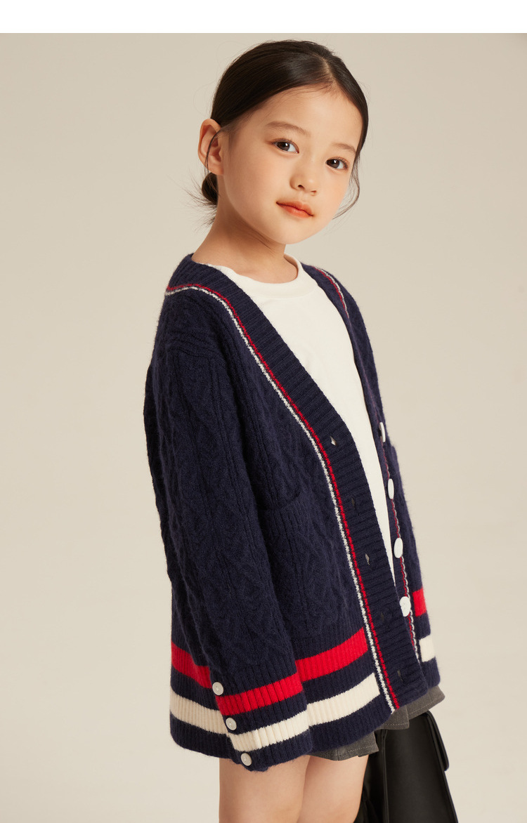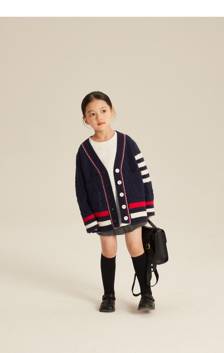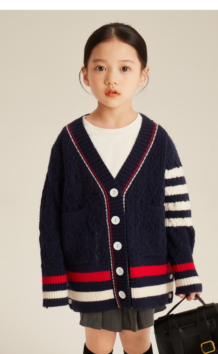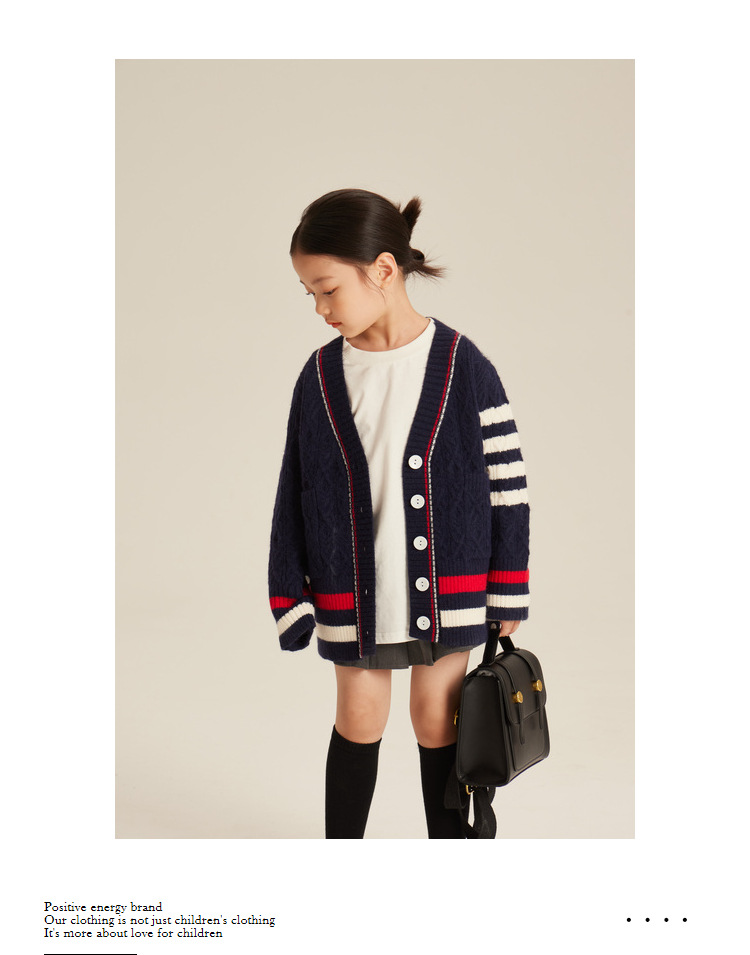 Amybaby 소녀의 코트 2024 새로운 봄과 가을 색상 일치 느슨한 서양식 긴 니트 카디건 스웨터스토어 가기