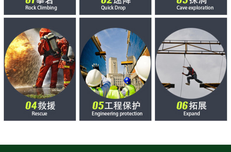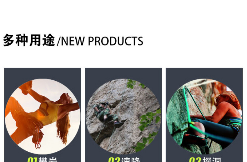 适用范围登山攀岩 高空作业 应急救援 工程保护 速降拓展 探洞