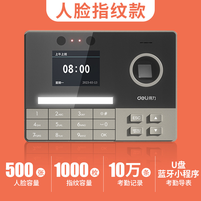 델리 얼굴 인식 출석 기계 3760W 회사 직원 작업 로그인 기계 휴대 전화 블루투스 지문 펀치 인 기계스토어 가기