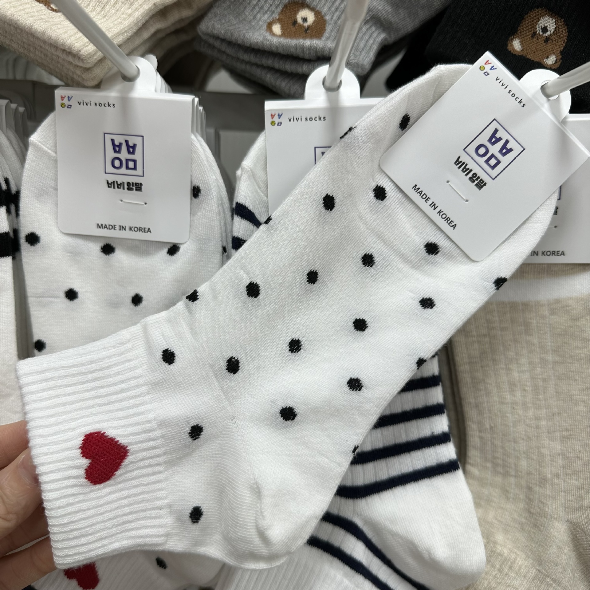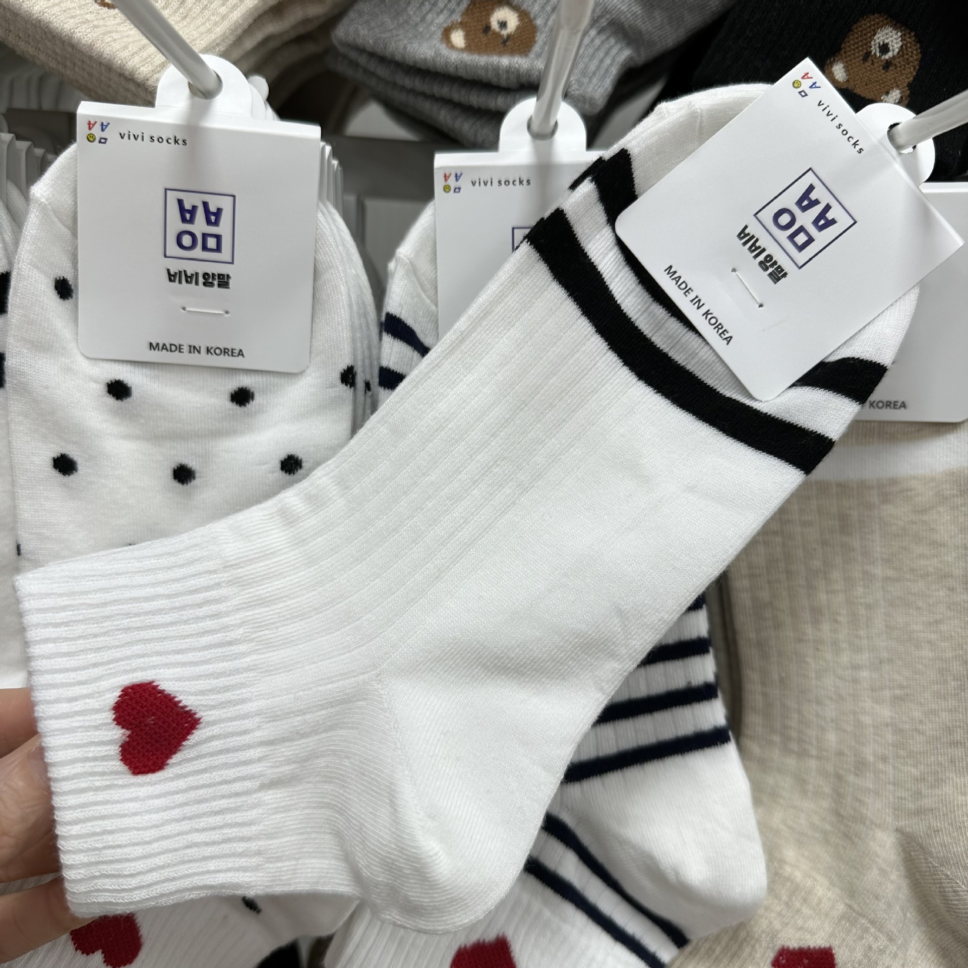 한국 양말 vivi 수입 봄과 여름 새로운 여성 양말 면 양말 다목적 간단한 사랑 줄무늬 통기성 소프트스토어 가기