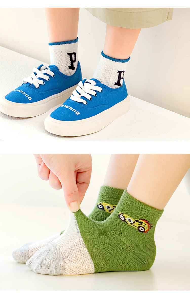 Minqi 여름 소년 양말 얇은 통기성 양말 만화 자동차 메쉬 양말 어린이 양말 도매