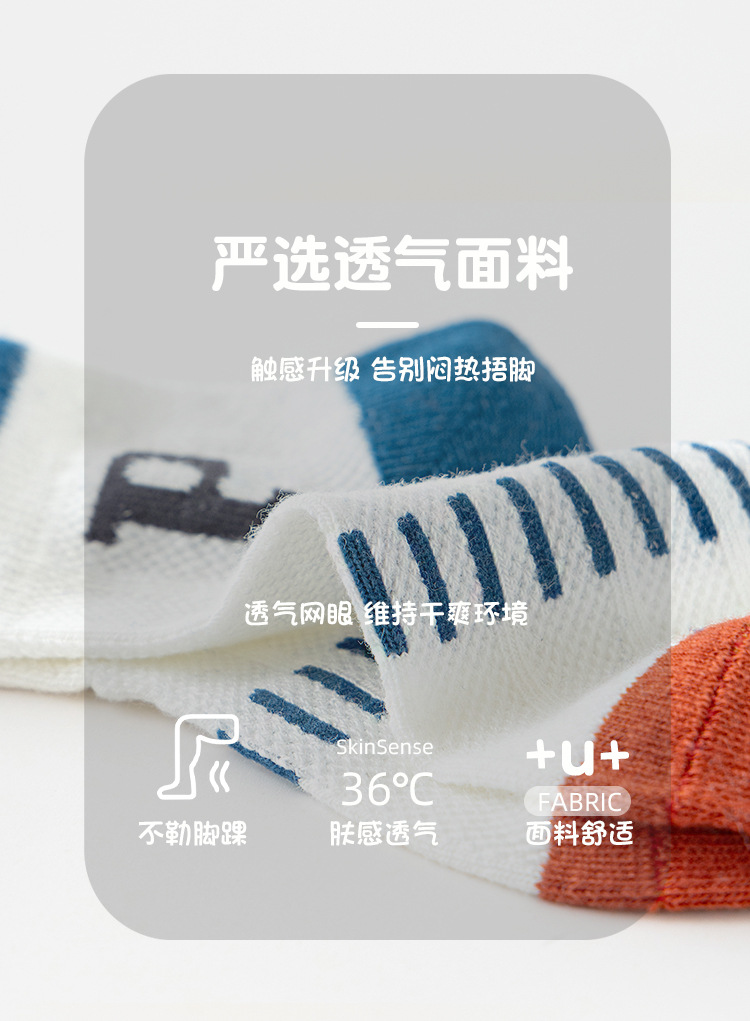 敏榴儿童袜子春夏季薄款男童棉袜网眼透气卡通恐龙中大童船袜批发