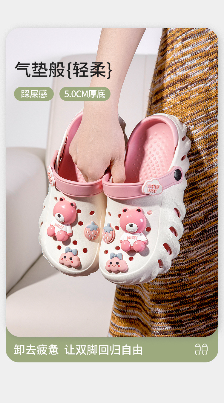 Fengrun 홈 홀 신발 여성 여름 2024 미끄럼 방지 두꺼운 바닥 똥 느낌 유행 야외 커플 비치 신발스토어 가기