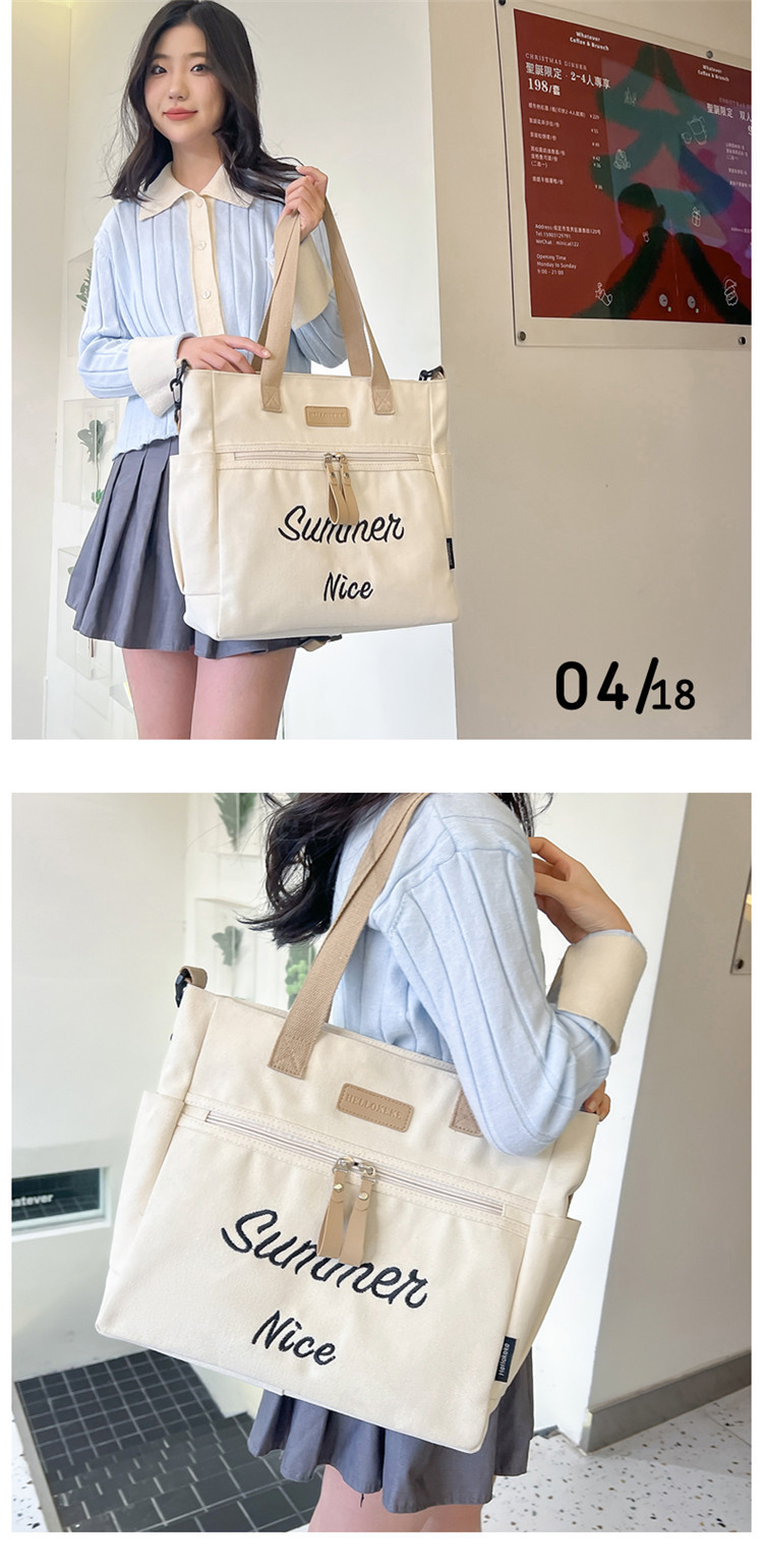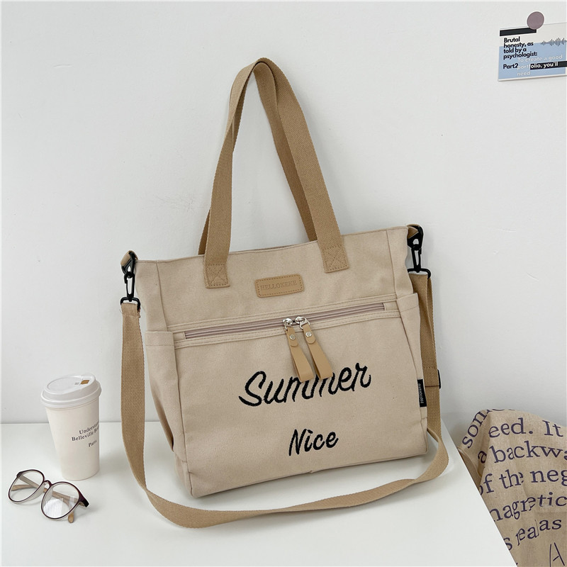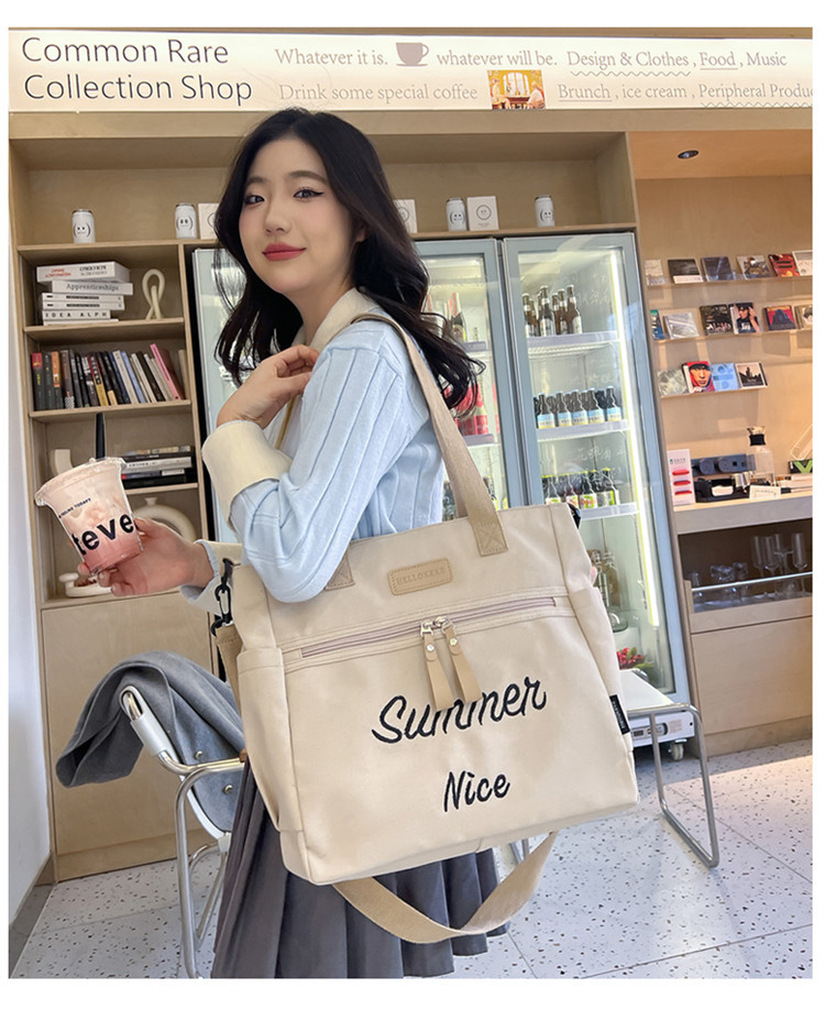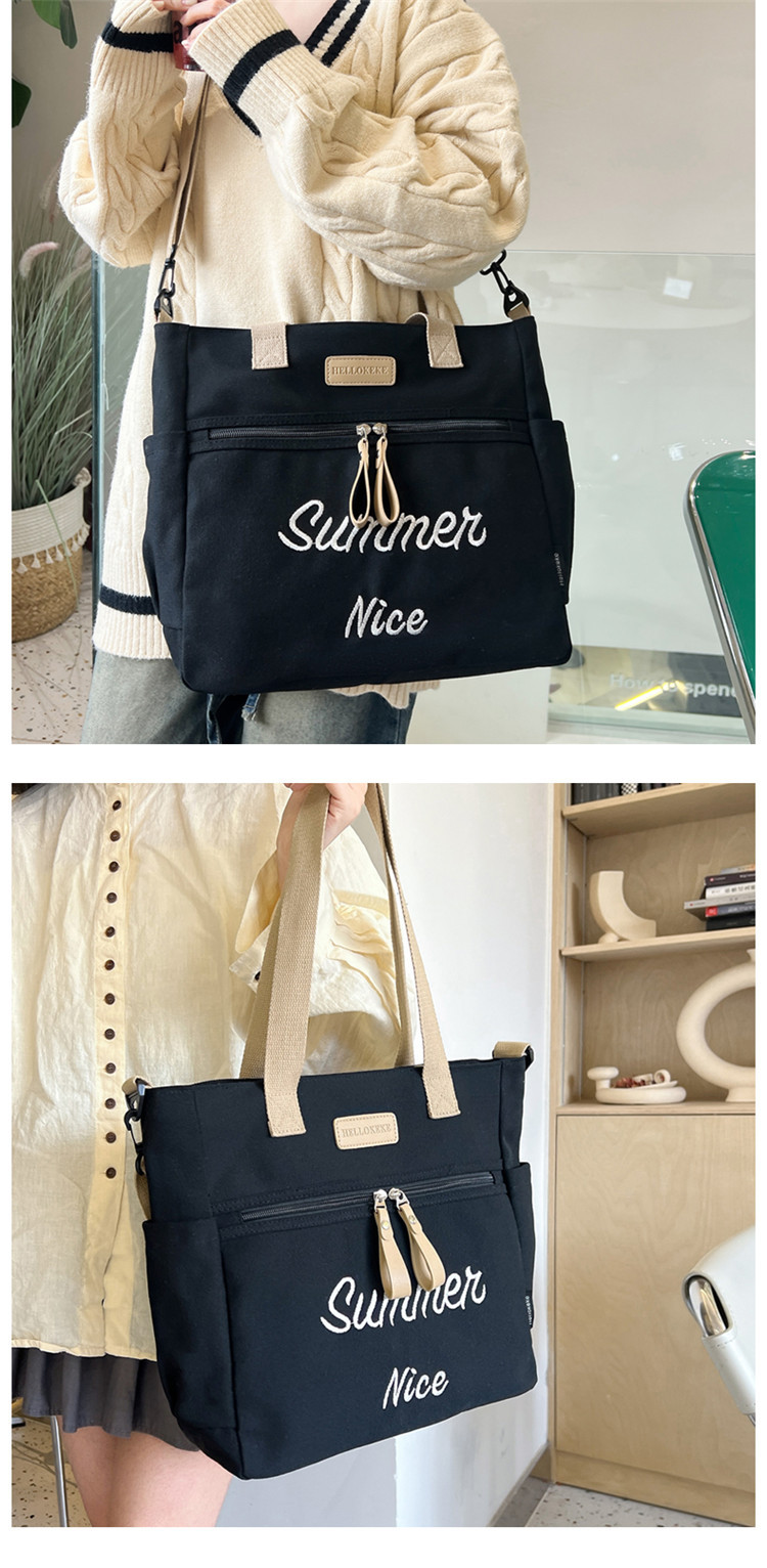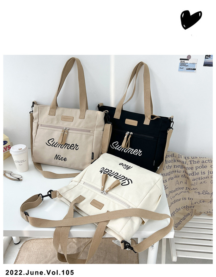 2025 새로운 대용량 캔버스 토트 백 자수 패션 숄더 백 여성 통근 다용도 손 겨드랑이 가방