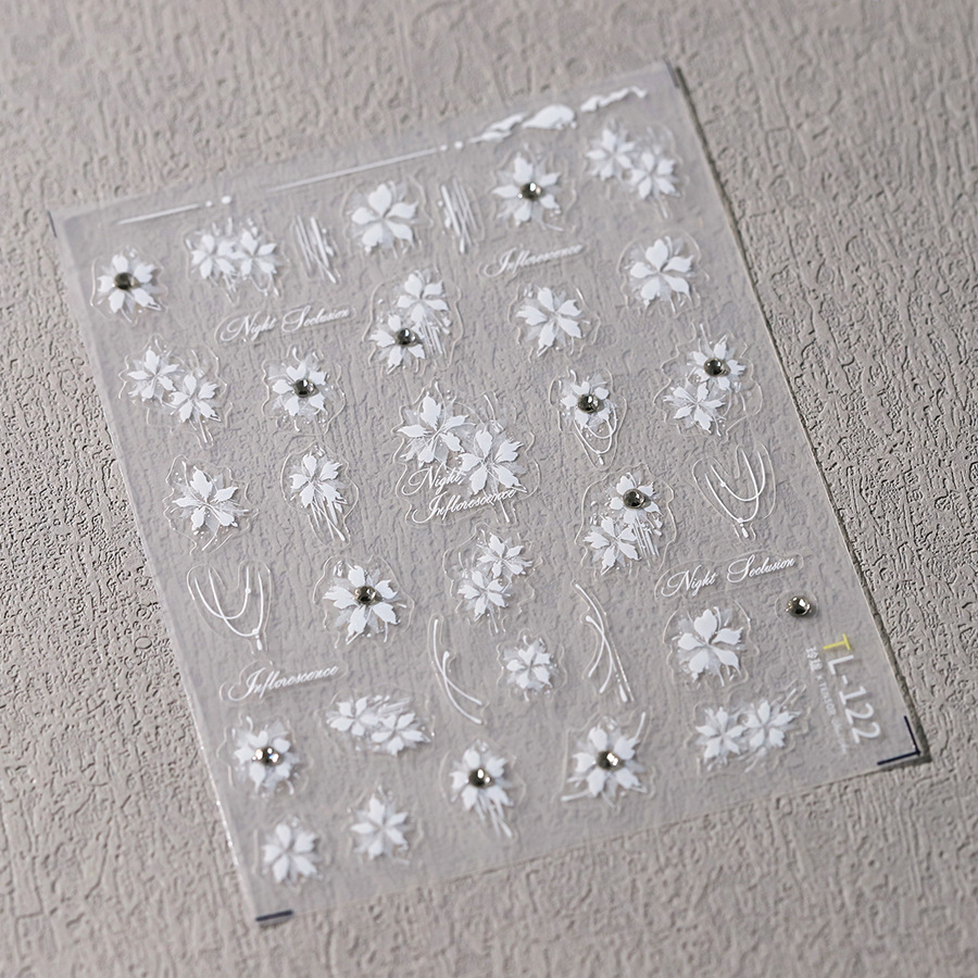 TENSOR 새로운 공예 화이트 플라워 3 차원 네일 스티커 접착 네일 스티커 보석 절묘한 시리즈 TL-122