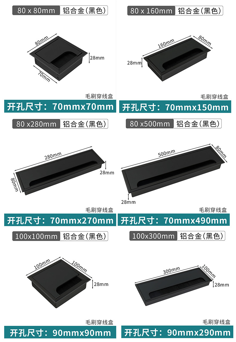 홈 오피스 데스크 케이블 구멍 커버 알루미늄 합금 브러시 케이블 박스 컴퓨터 책상 데스크탑 케이블 직사각형 케이블 박스