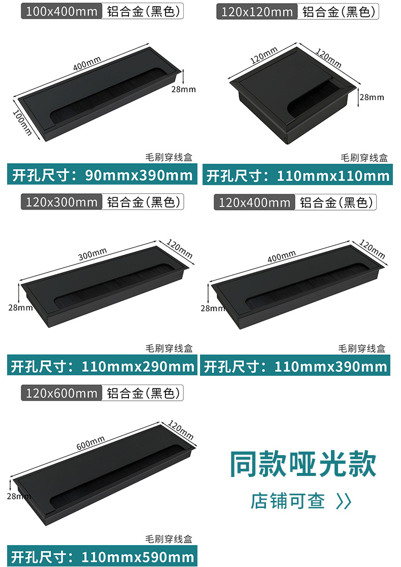 홈 오피스 데스크 케이블 구멍 커버 알루미늄 합금 브러시 케이블 박스 컴퓨터 책상 데스크탑 케이블 직사각형 케이블 박스스토어 가기