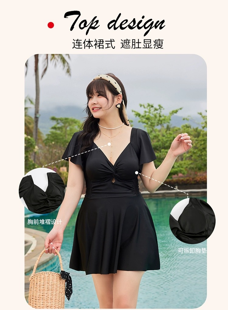 새로운 대형 수영복 여성용 슬림 벨리 커버링 및 고기 커버 수영복 통비 여성용 바디 스커트 스타일 솔리드 컬러 수영복
