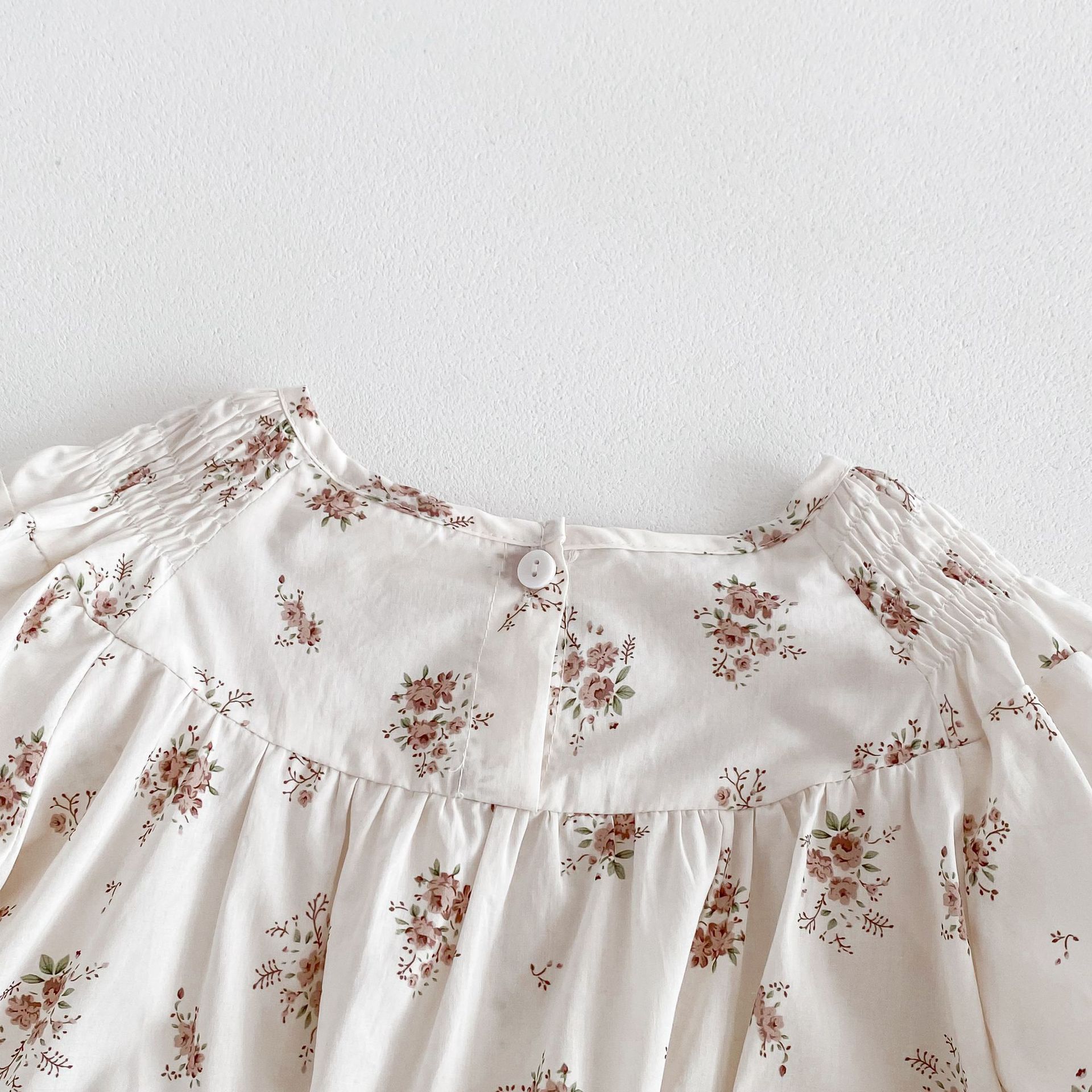 2024 봄 새 소녀 치마 한국식 꽃 거품 소매 공주 원피스 목가적 인 스타일 랜턴 소매 원피스스토어 가기