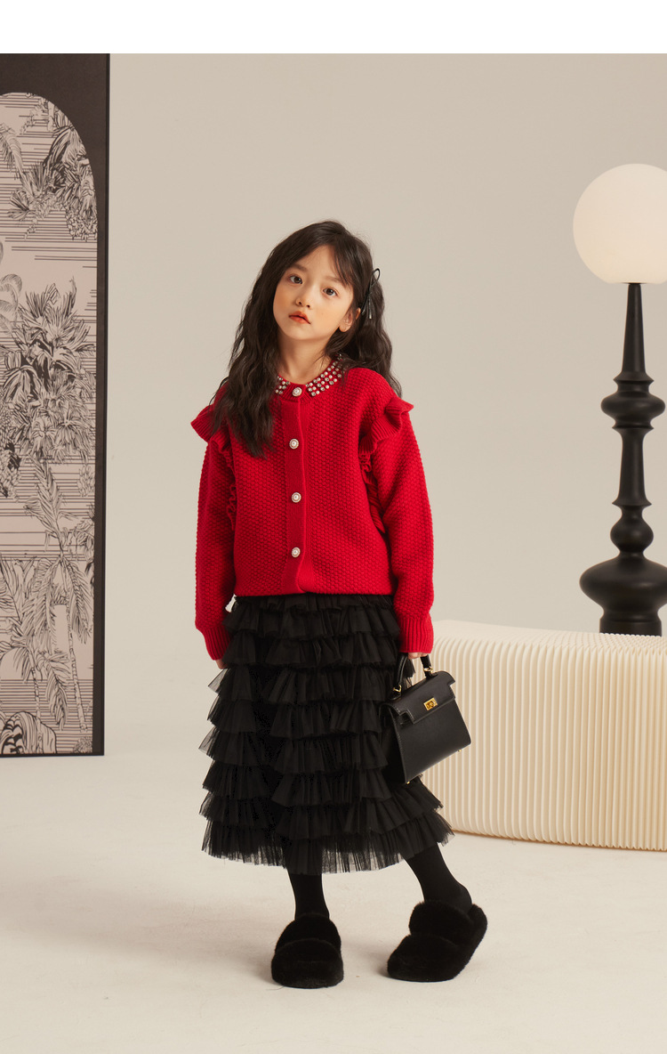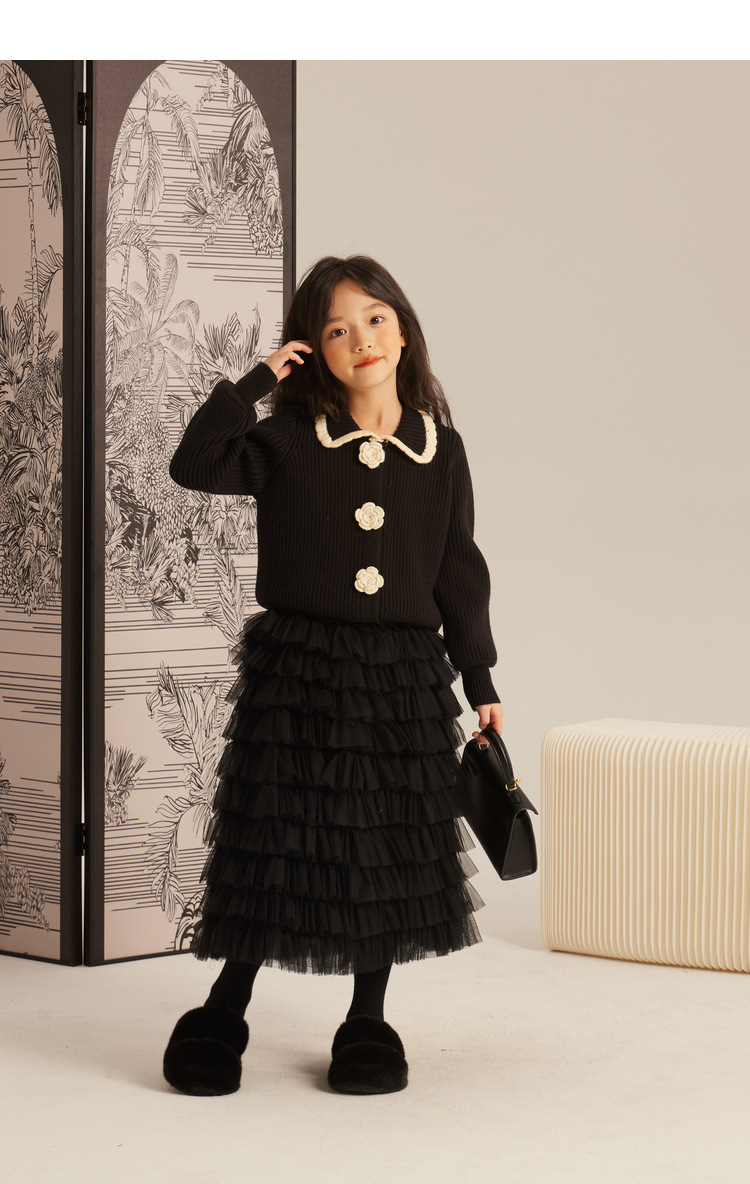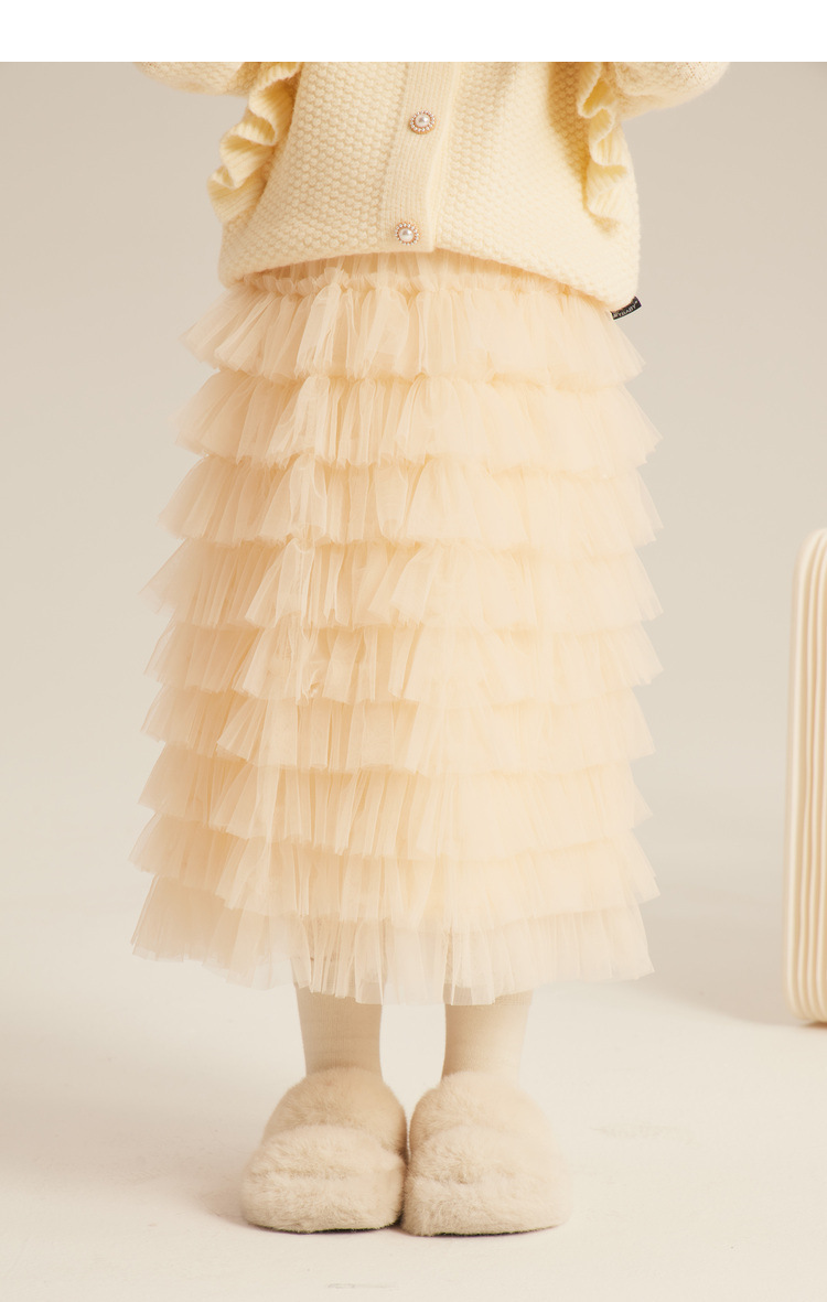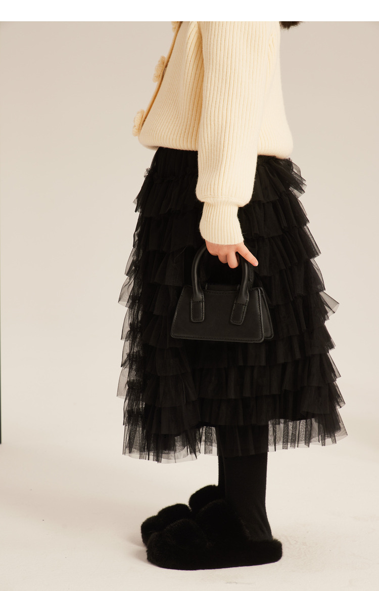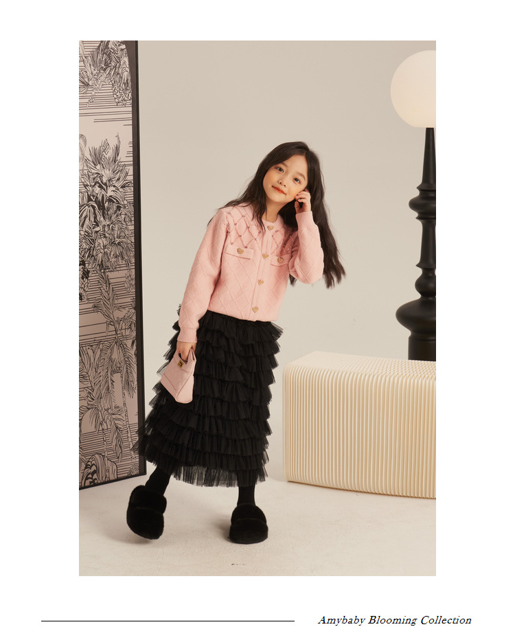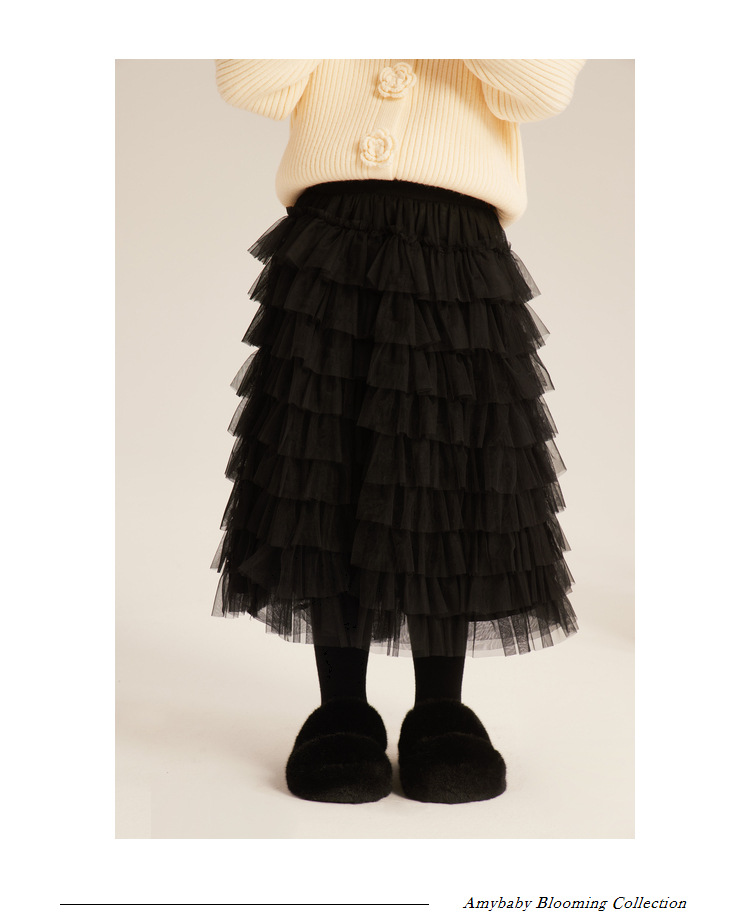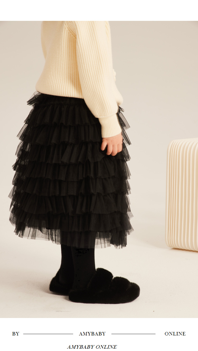 Amybaby 여자 스커트 2023 새로운 어린이 가을과 겨울 유행 기질 긴 스커트 케이크 스커트 메쉬 스커트스토어 가기