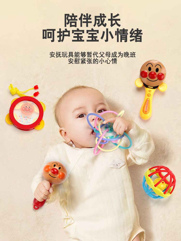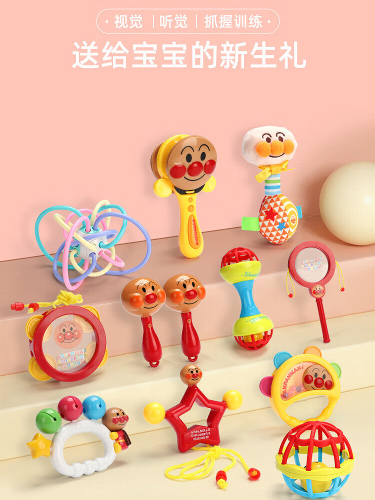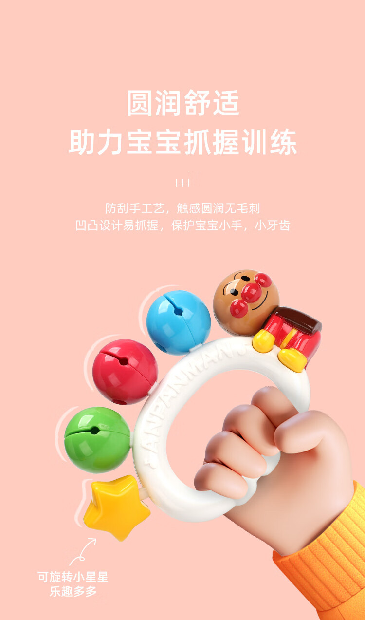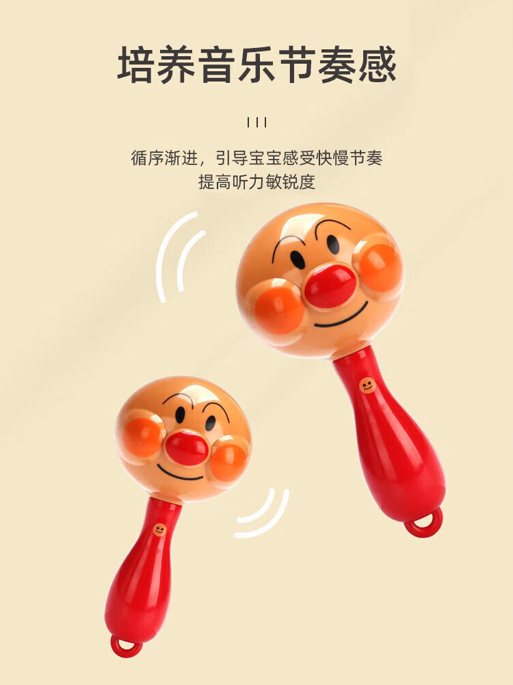 面包超人新生宝宝手摇铃沙锤拨浪鼓安抚玩具0-6-12个月婴儿抓握