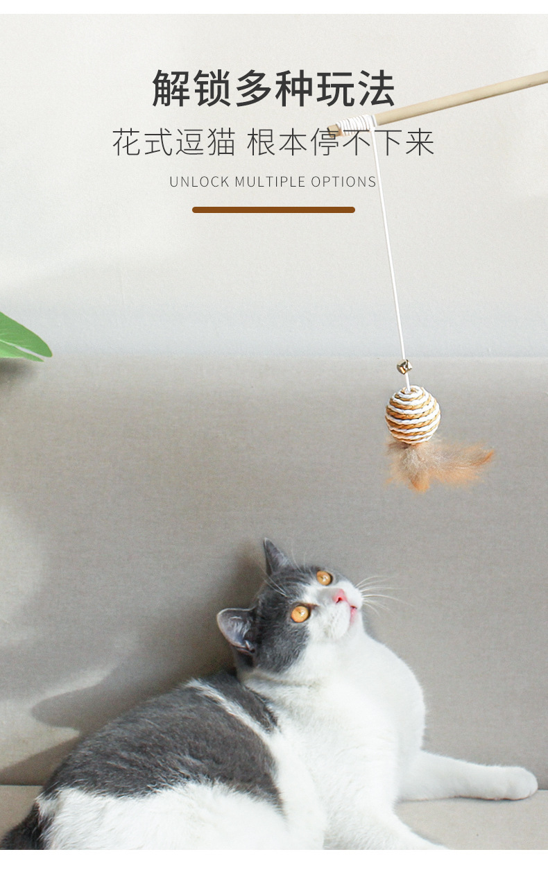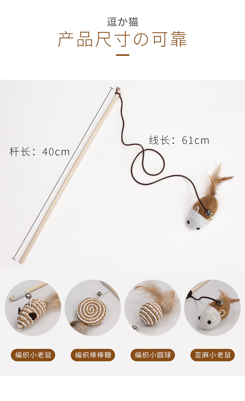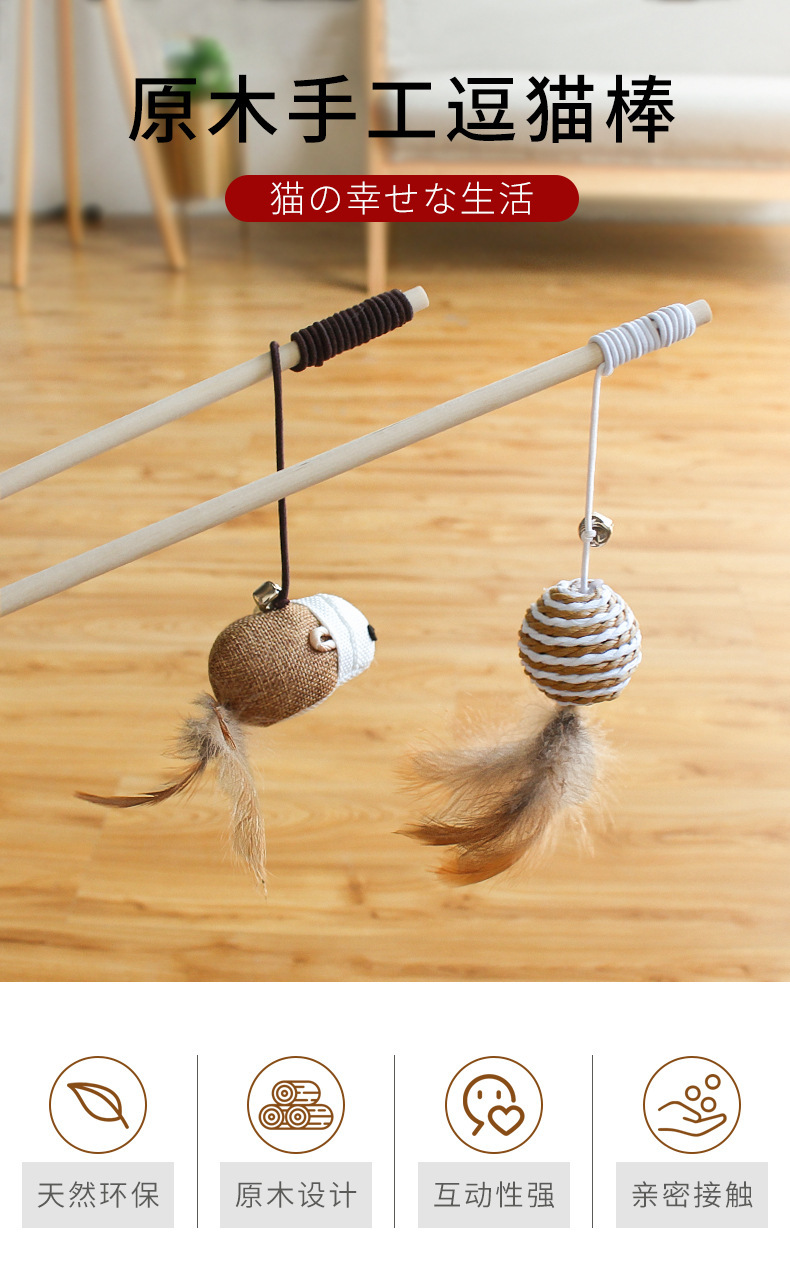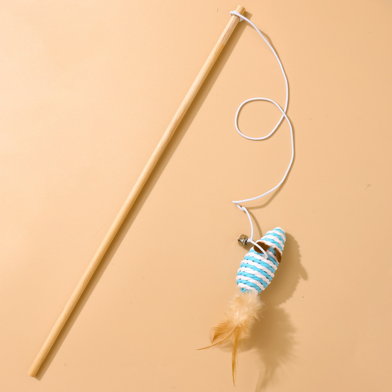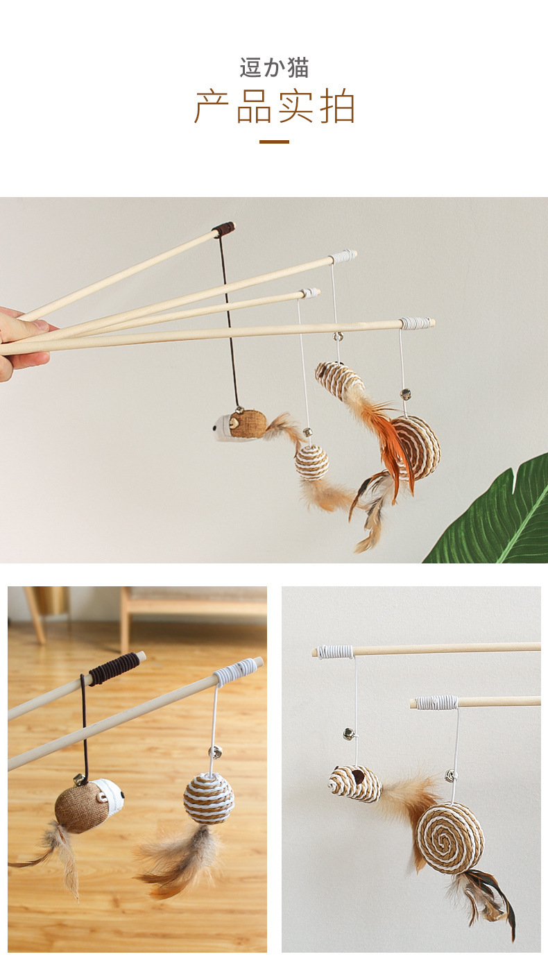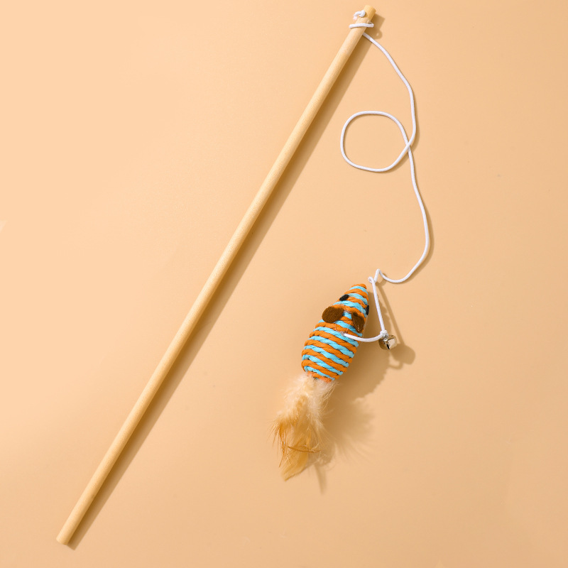 공장 직접 판매 나무 막대 재미있는 고양이 스틱 깃털 벨 마우스 재미있는 고양이 막대 고양이 장난감 대화 형 자기-안녕 애완 동물 용품