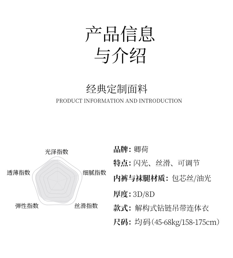 Qing He "다이아몬드 체인" 섹시한 슬링 원피스 스타킹, 탈착식 반짝이는 얇은 감정 블랙 실크 속옷 세트