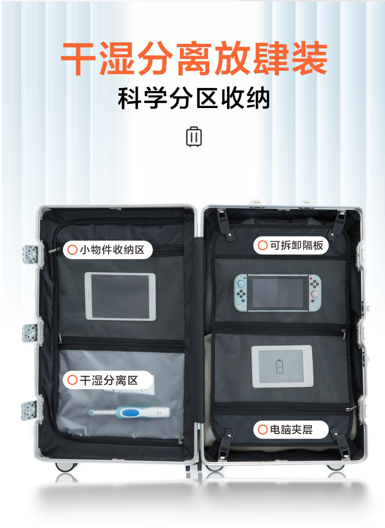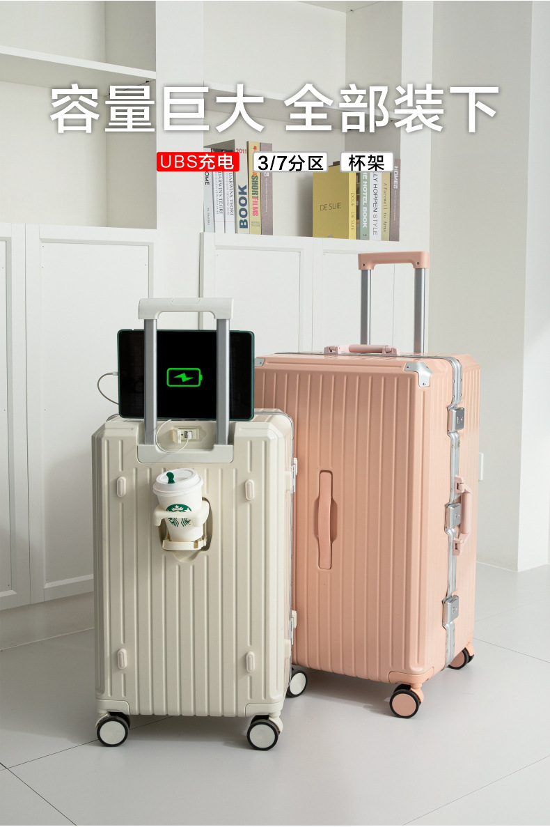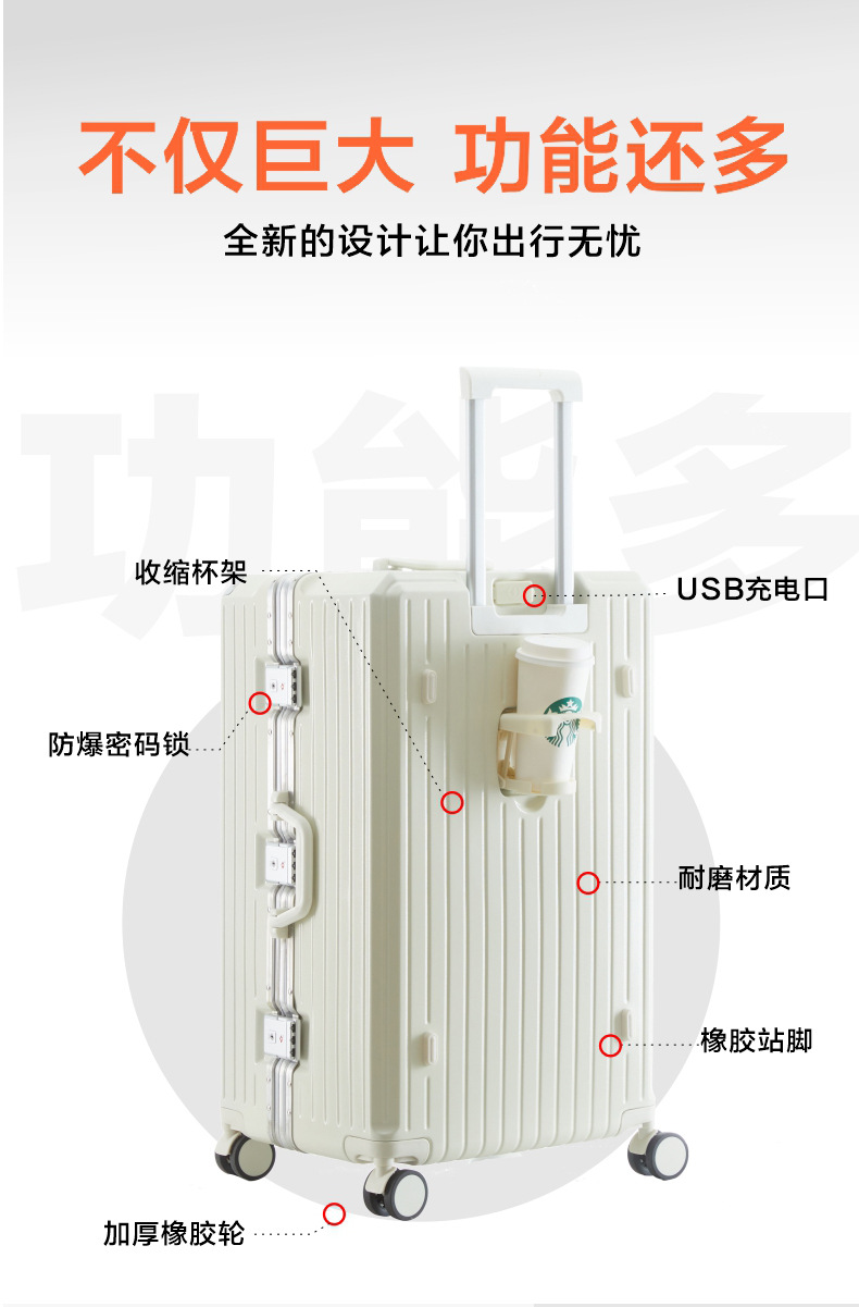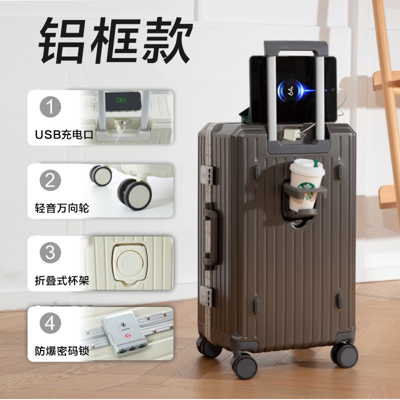 남성용 대용량 트롤리 케이스 2023 새로운 다기능 수하물 알루미늄 프레임 음소거 유니버설 휠 28 인치 수하물 케이스