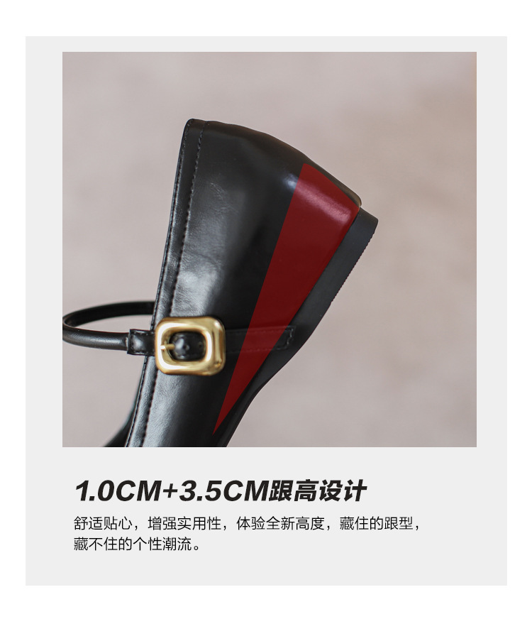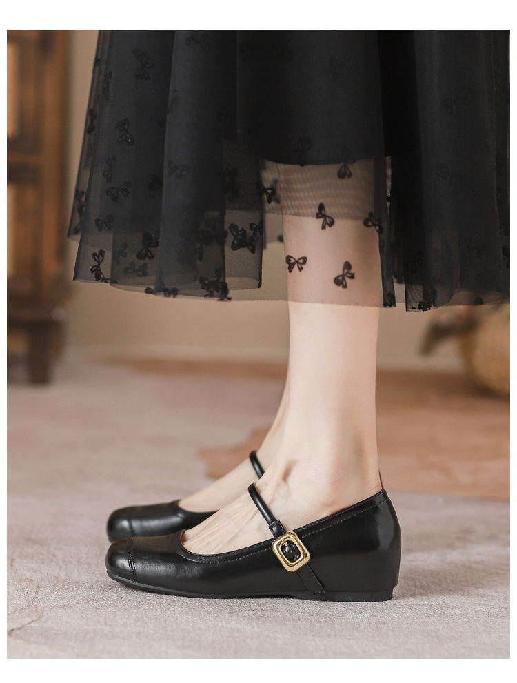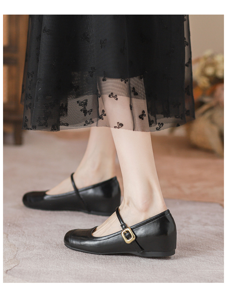 작은 내부 높이 프랑스 샤넬 스타일 발레 슈즈 버클 스퀘어 토 레트로 얕은 입 메리 제인 싱글 레이어 슈즈