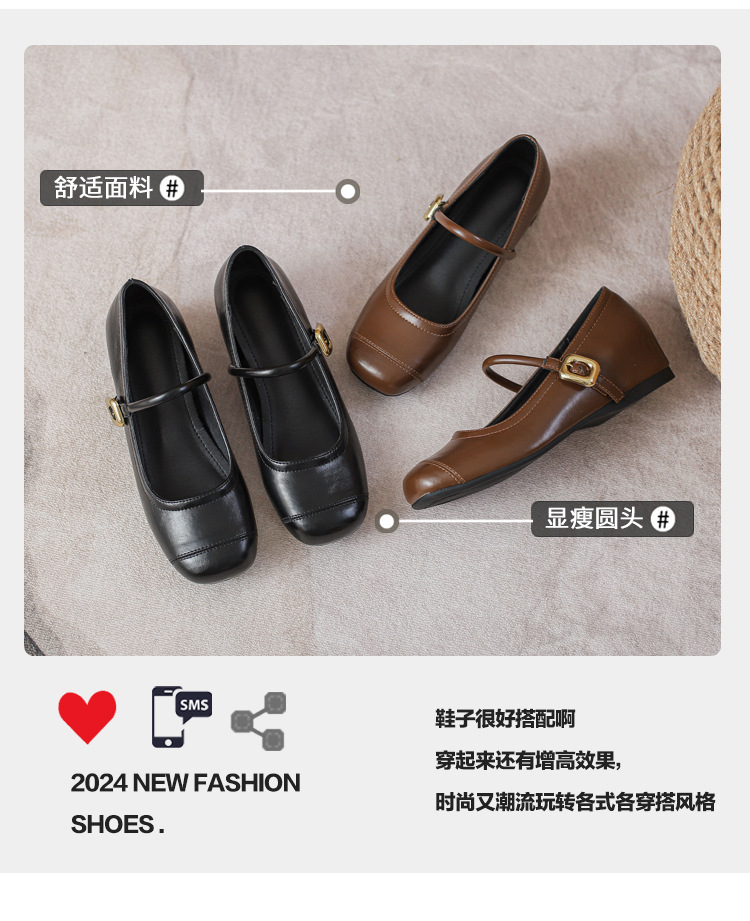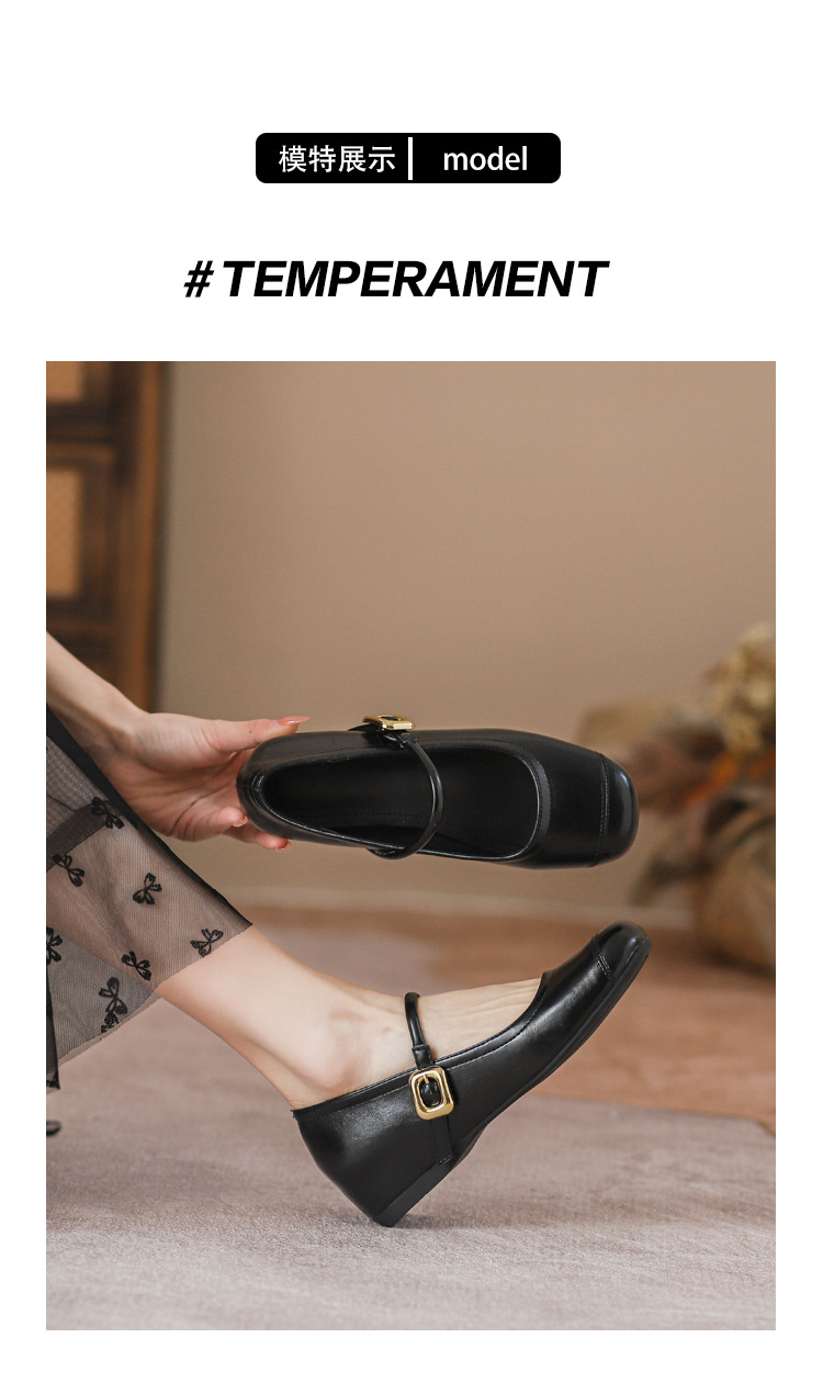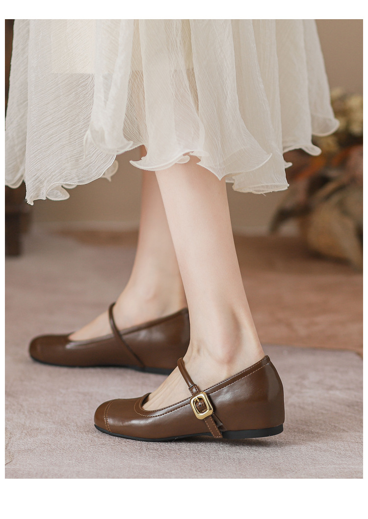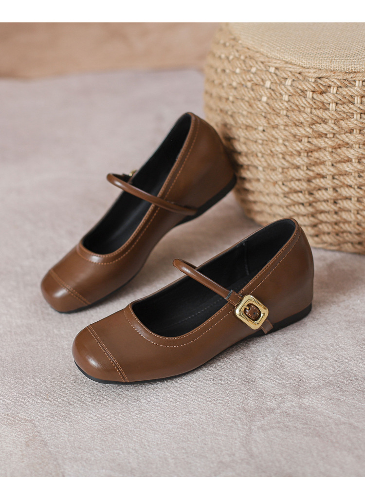 작은 내부 높이 프랑스 샤넬 스타일 발레 슈즈 버클 스퀘어 토 레트로 얕은 입 메리 제인 싱글 레이어 슈즈스토어 가기