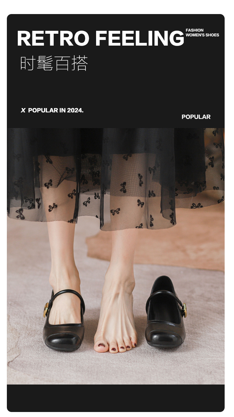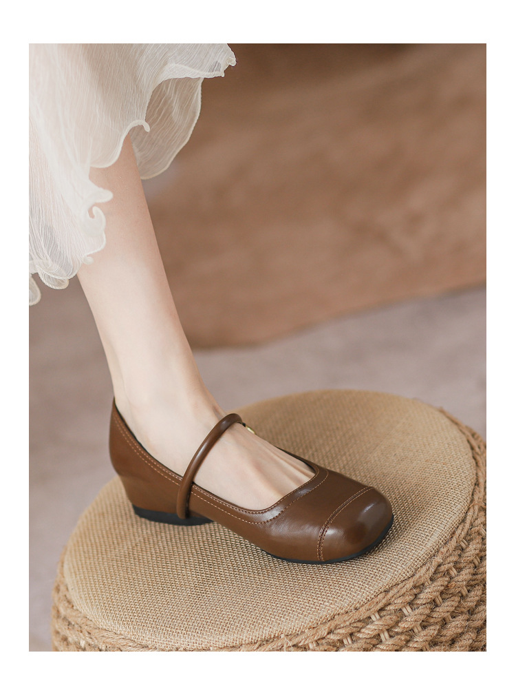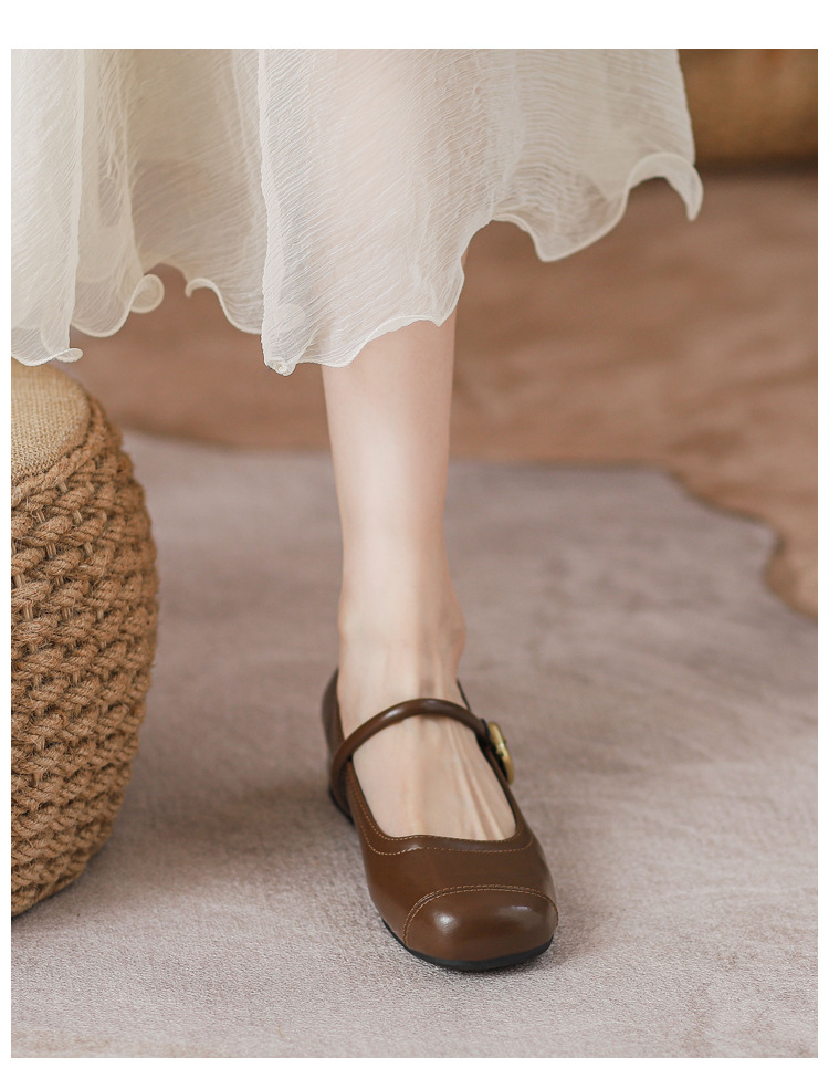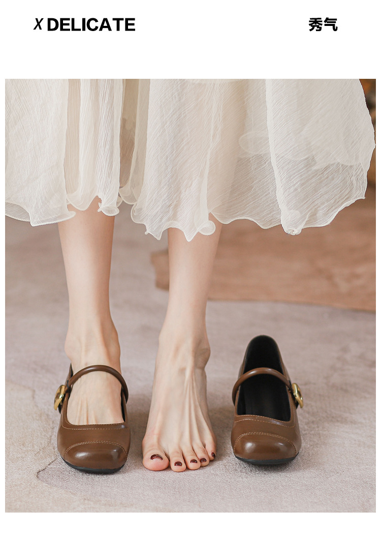 작은 내부 높이 프랑스 샤넬 스타일 발레 슈즈 버클 스퀘어 토 레트로 얕은 입 메리 제인 싱글 레이어 슈즈스토어 가기