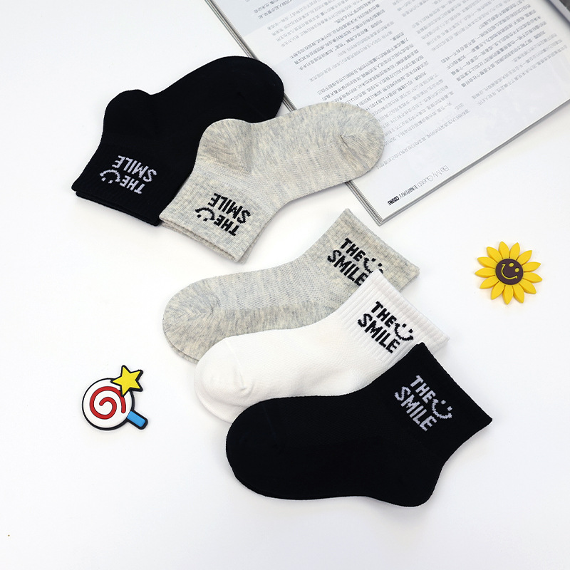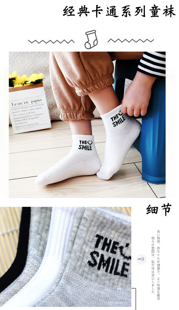 도매 어린이 양말 소년 봄 얇은 메쉬 통기성 문자 흑백 트렌디 인 학생 아기 양말