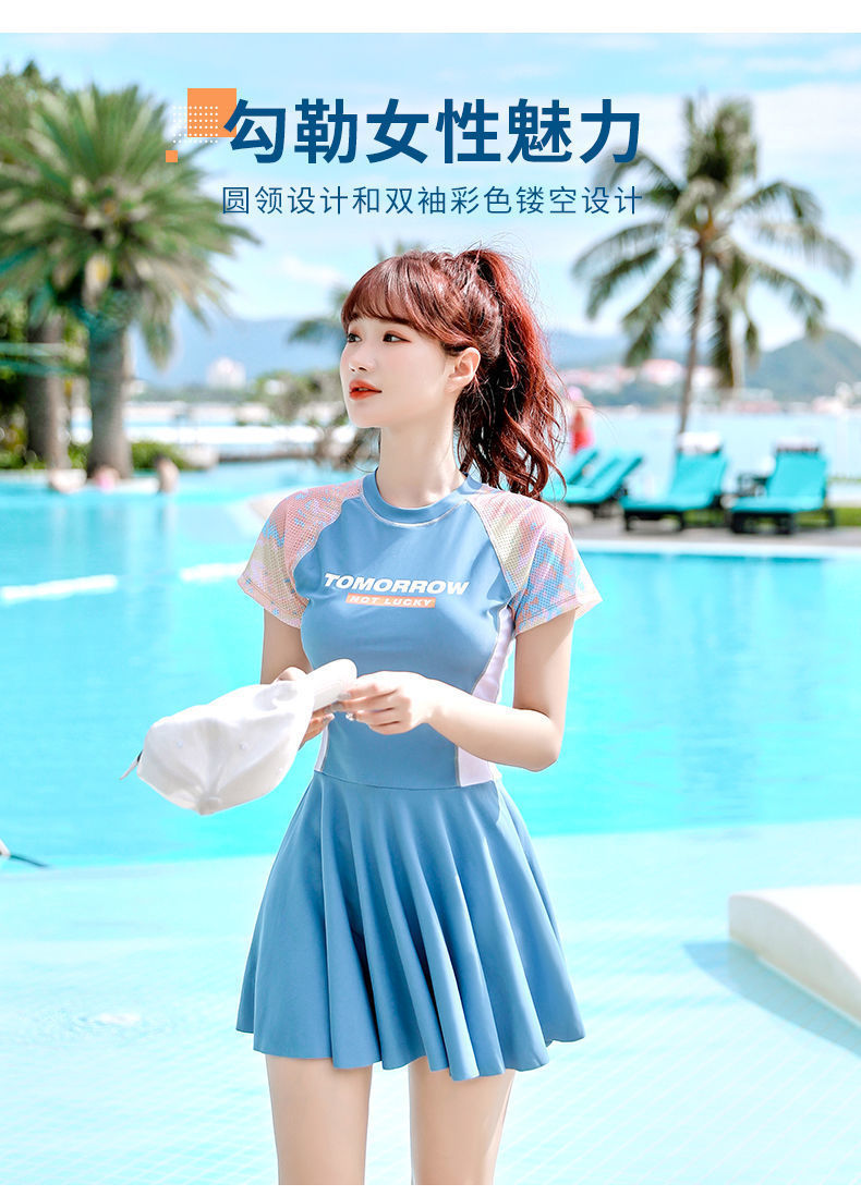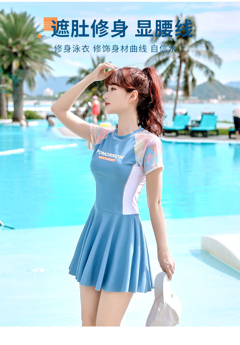 여성 보수적 학생 수영복 2025 새로운 스타일 스플릿 보수적 슬리밍 배 커버 중고등학생 패션 수영복스토어 가기