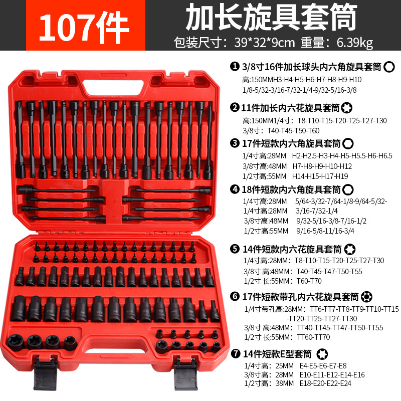 107피스 육각 압착 S2 스크루드라이버 소켓 헤드 인터페이스 전기 렌치 육각 압착 헤드 윈드 캐논 롱 튜브 압착 헤드스토어 가기