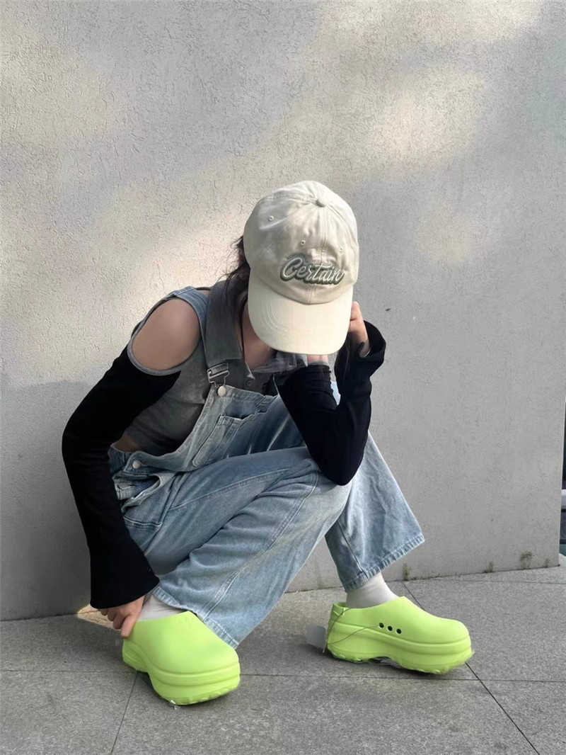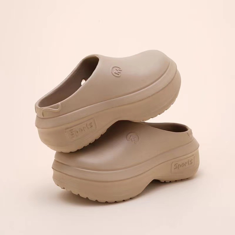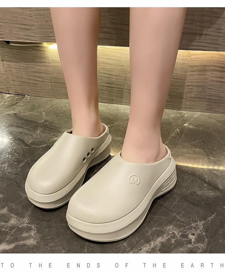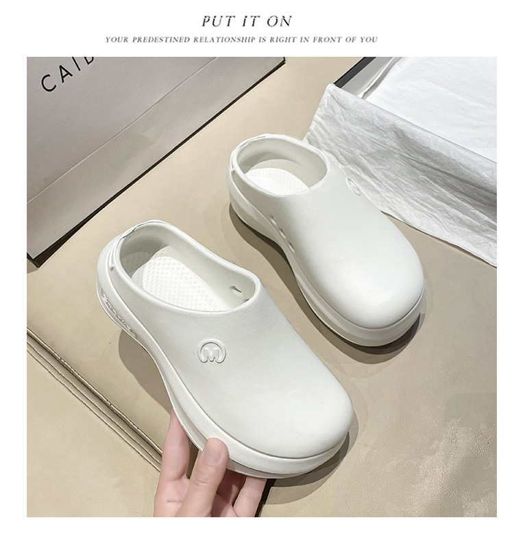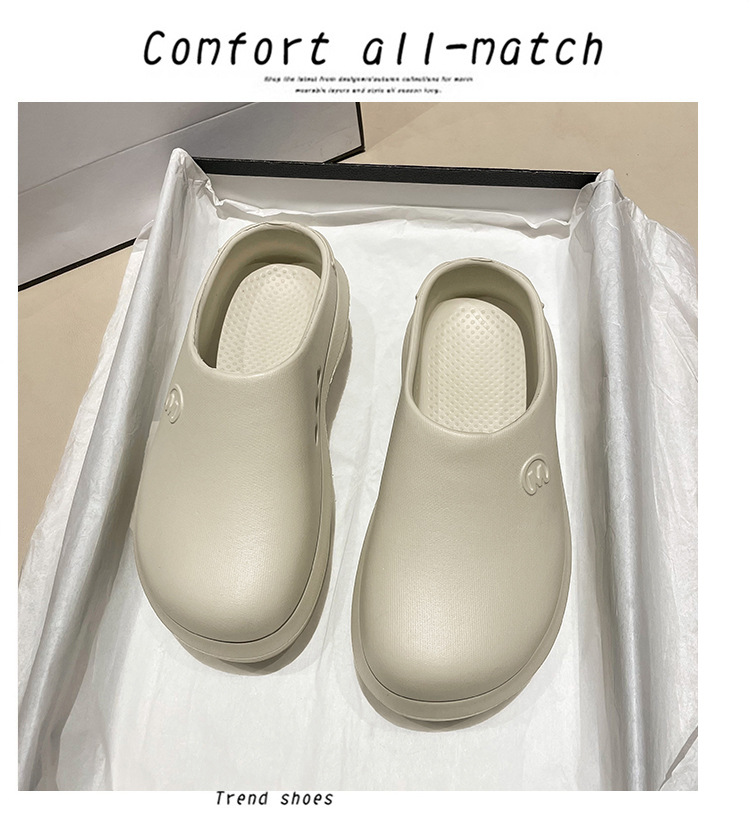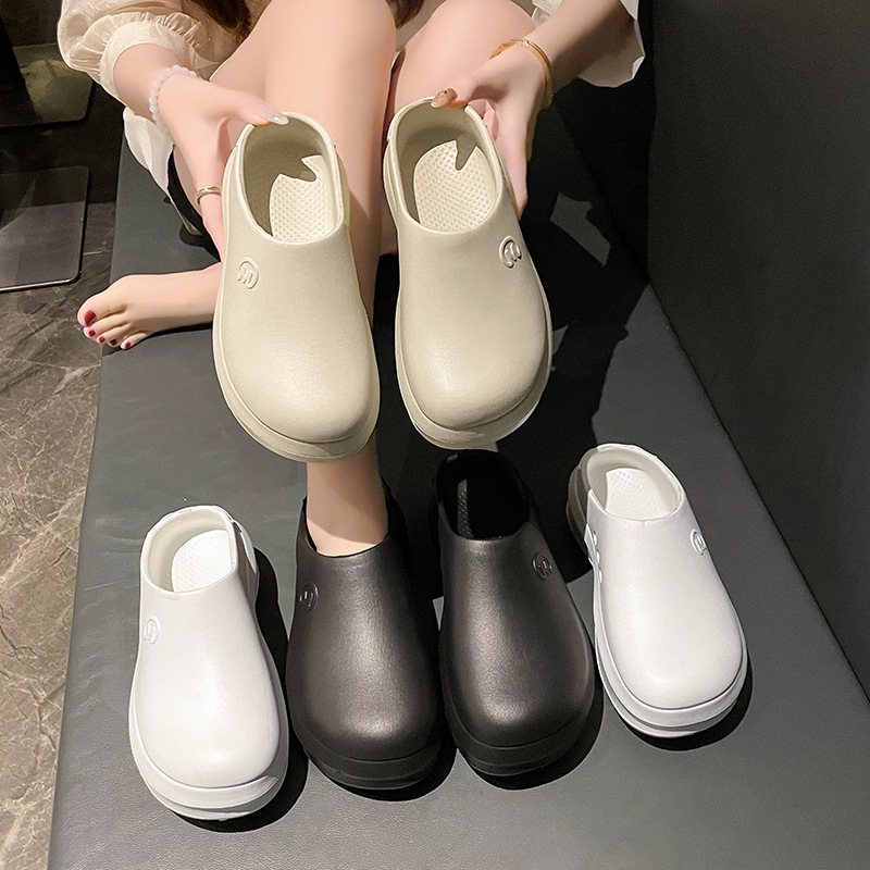 두꺼운 밑창 Baotou 슬리퍼 여성용 Ins 경량 미끄럼 방지 강화 요리사 신발 플랫폼 스포츠 하프 슬리퍼 홀 신발 여성용 샌들