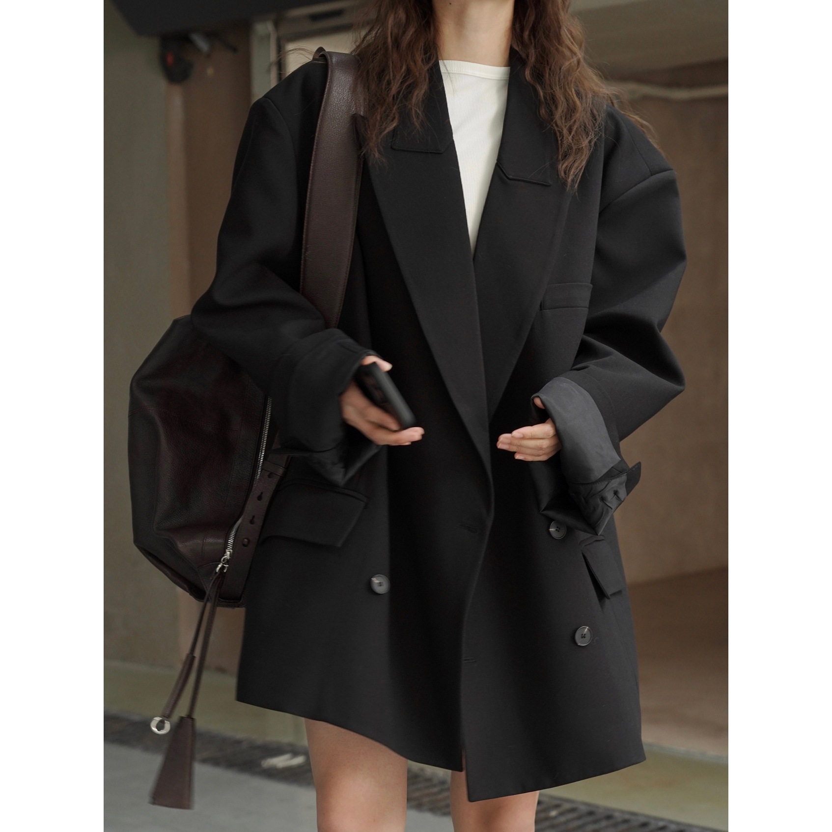 루프르 가을 파리 스타일 레트로 고급스러운 와이드 숄더 더블 버튼 긴팔 정장 재킷 여성용