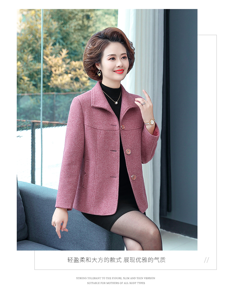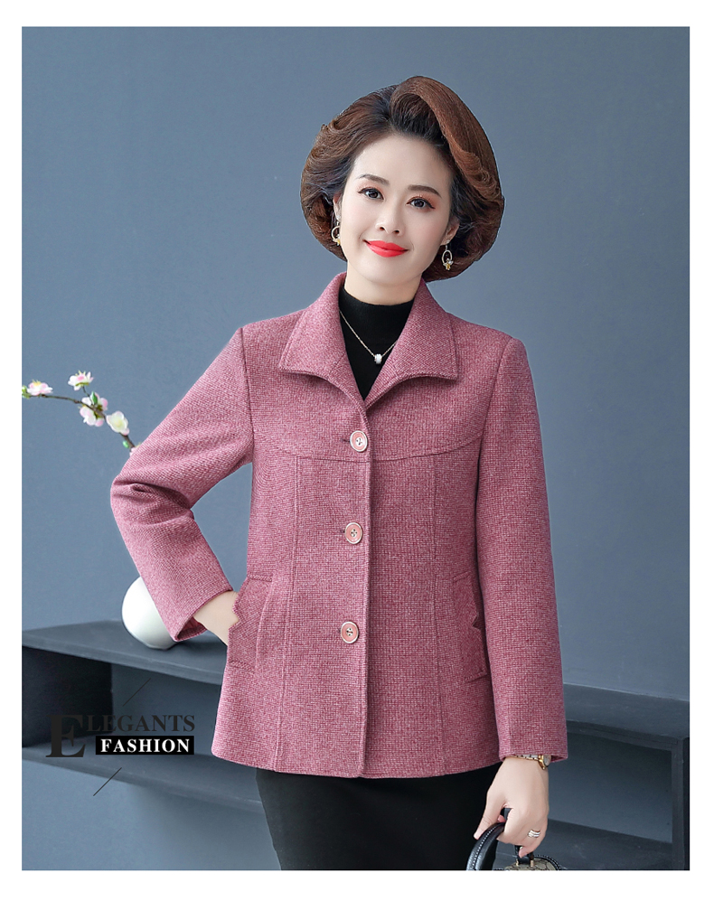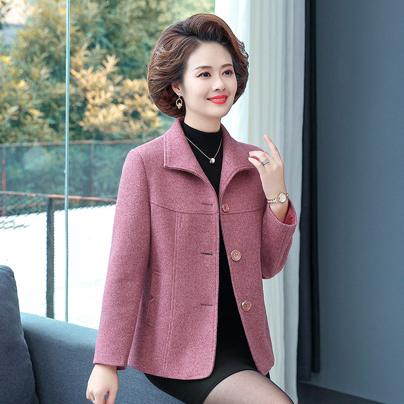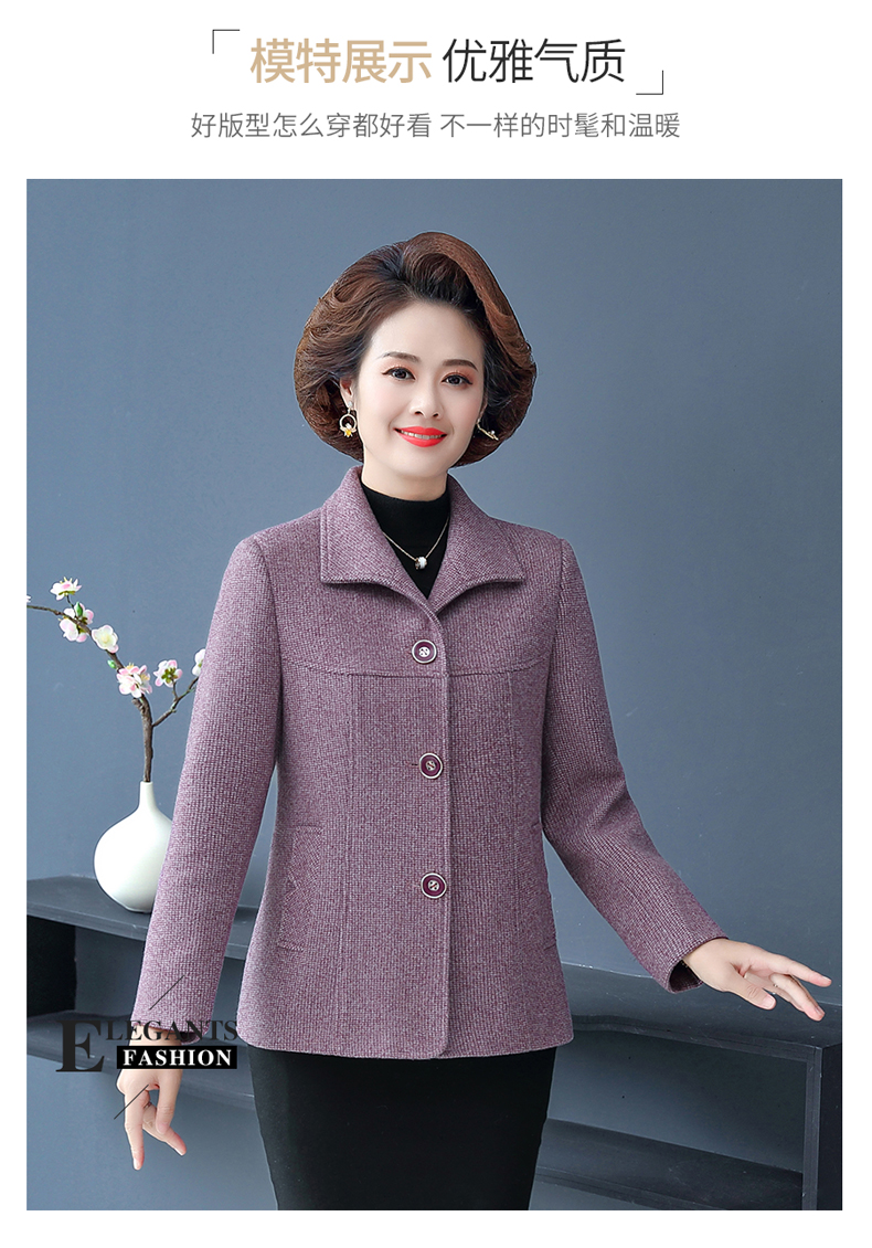 중년 · 노년층 어머니들, 중년 여성 세트 서양식 누빔안감 플러스 사이즈 짧은 격자 무늬 코트 모직 가을 옷 입는다