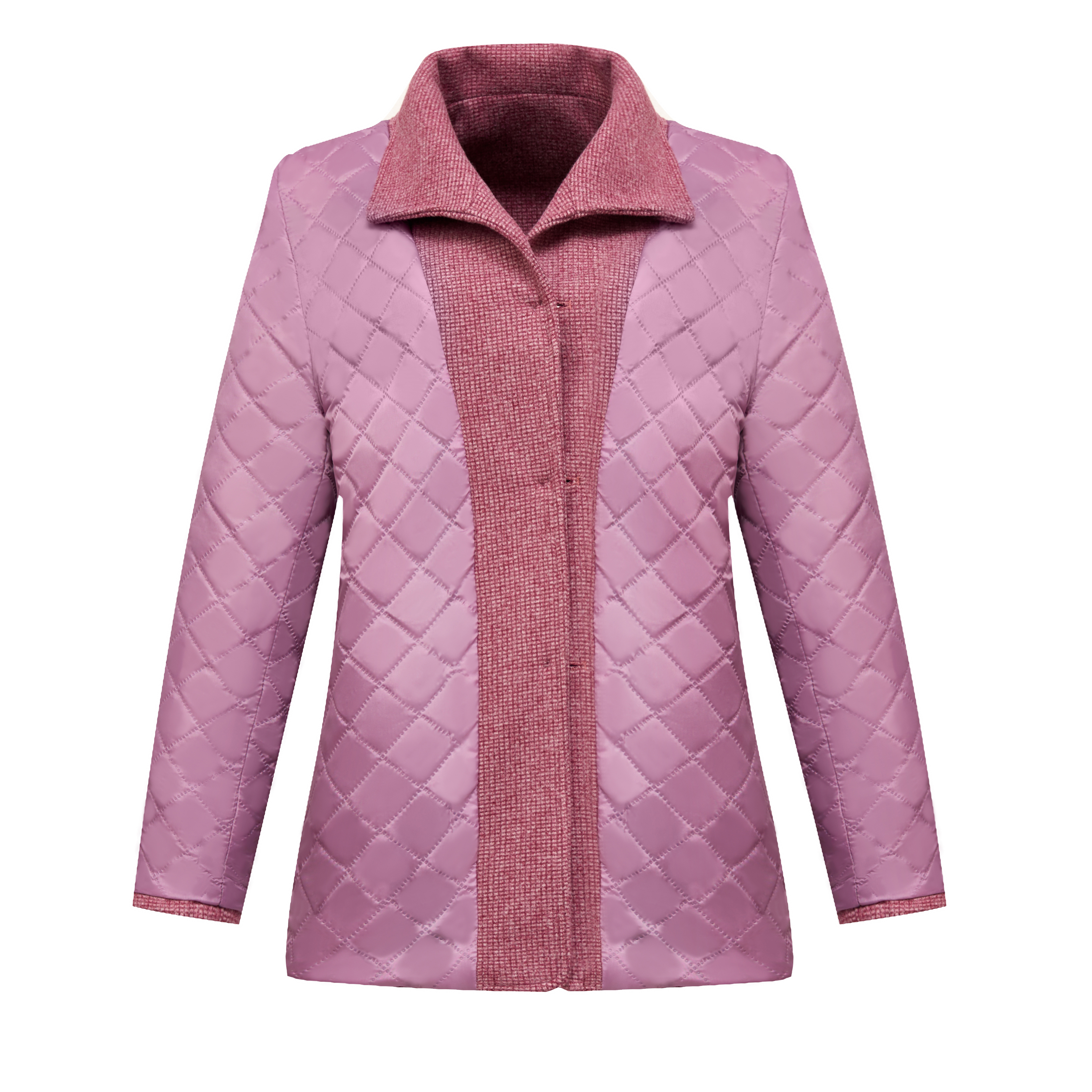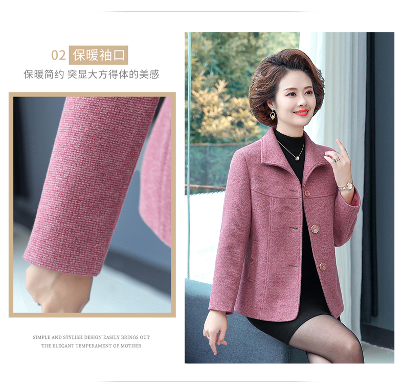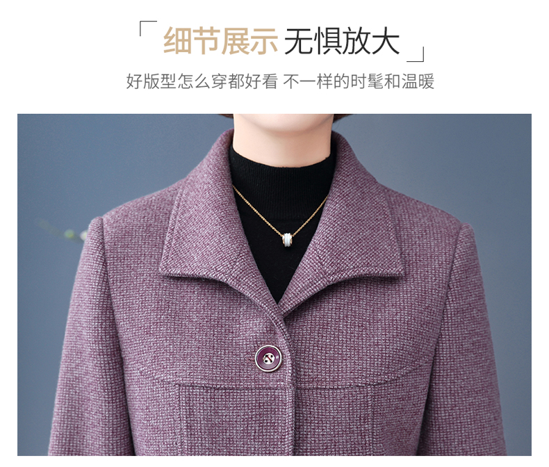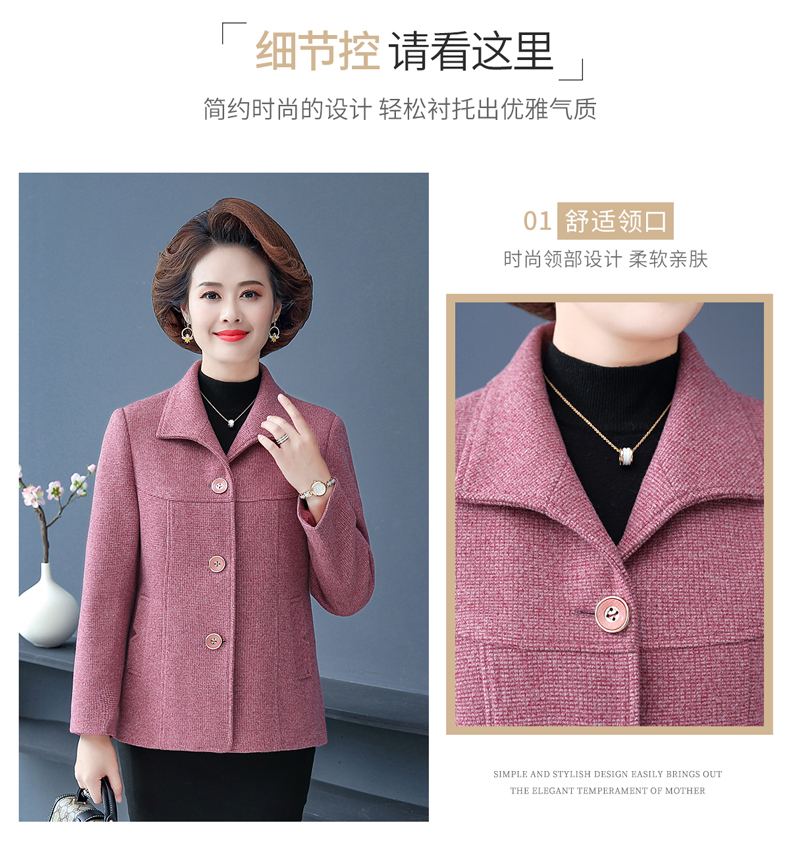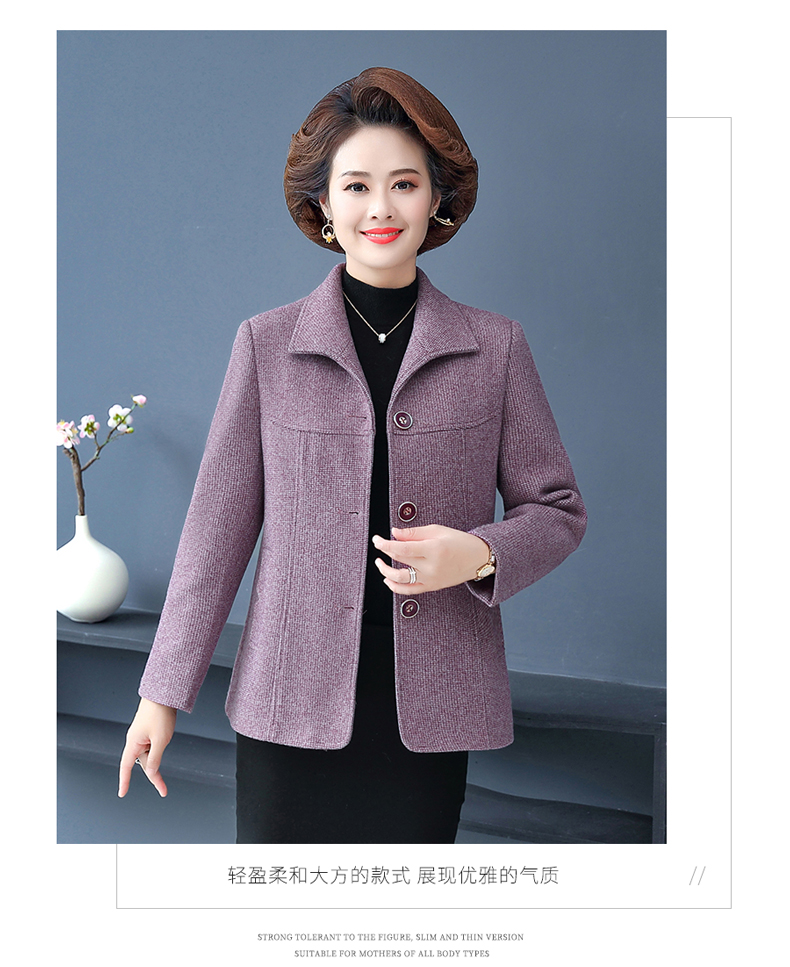 중년 · 노년층 어머니들, 중년 여성 세트 서양식 누빔안감 플러스 사이즈 짧은 격자 무늬 코트 모직 가을 옷 입는다