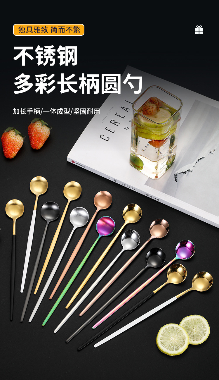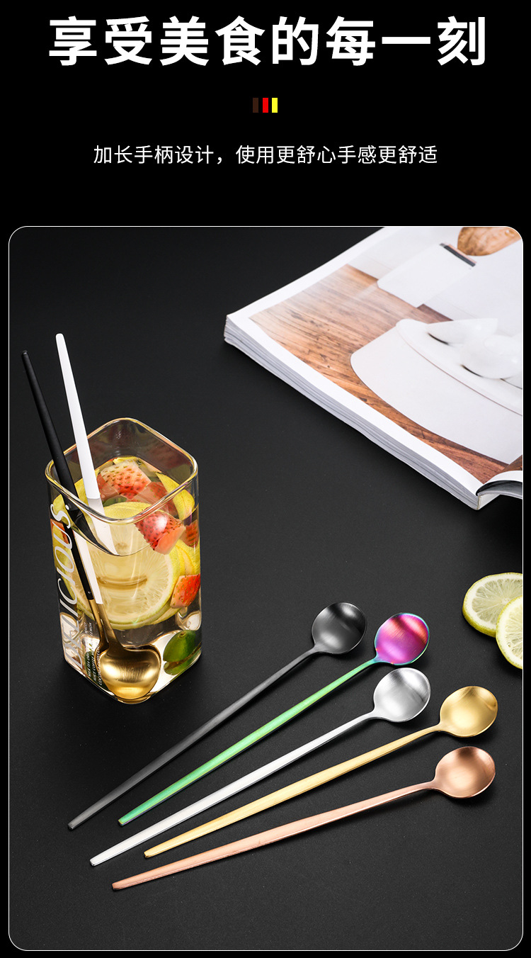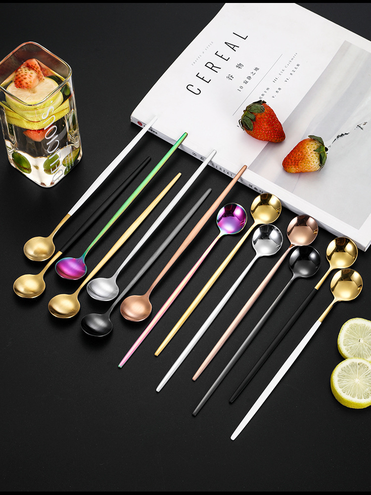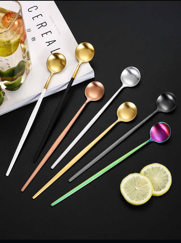 스테인레스 스틸 커피 믹싱 숟가락 높은 모양의 긴 손잡이 숟가락 창조적 인 바 칵테일 감동 얼음 숟가락 인쇄 로고스토어 가기