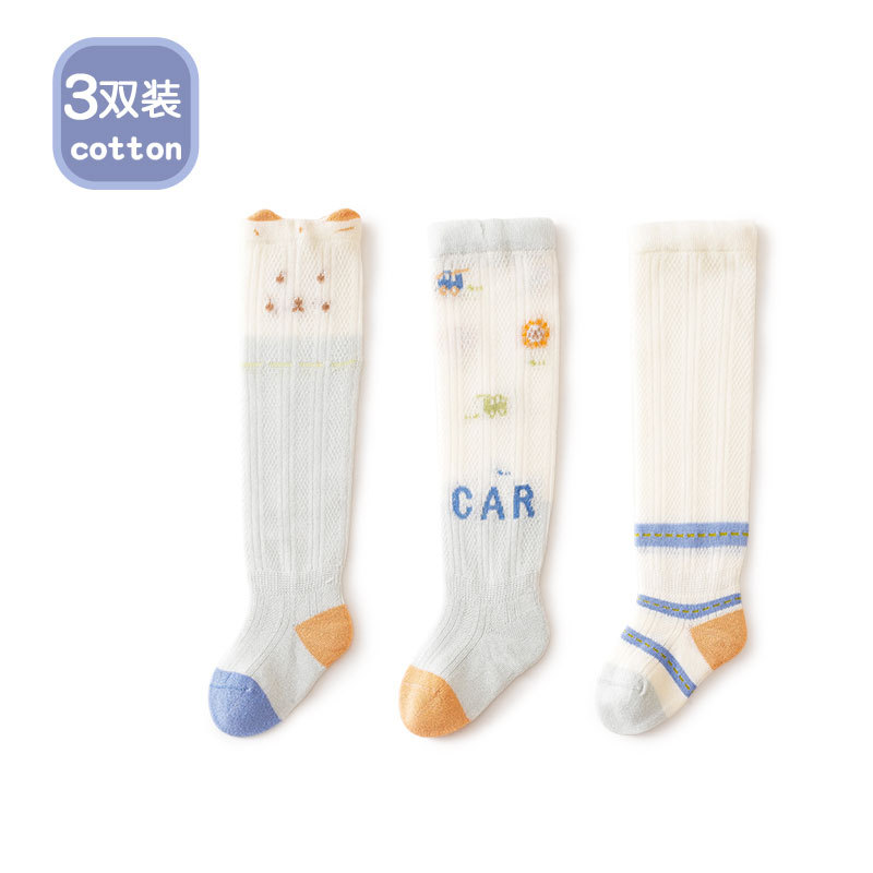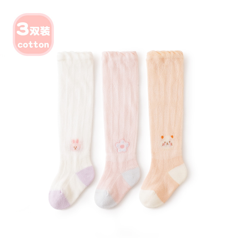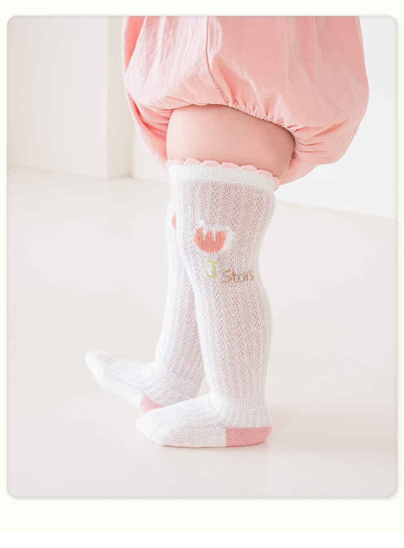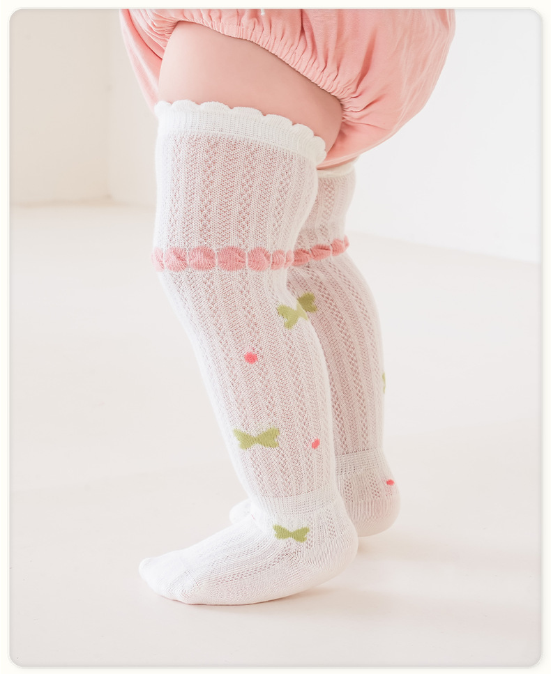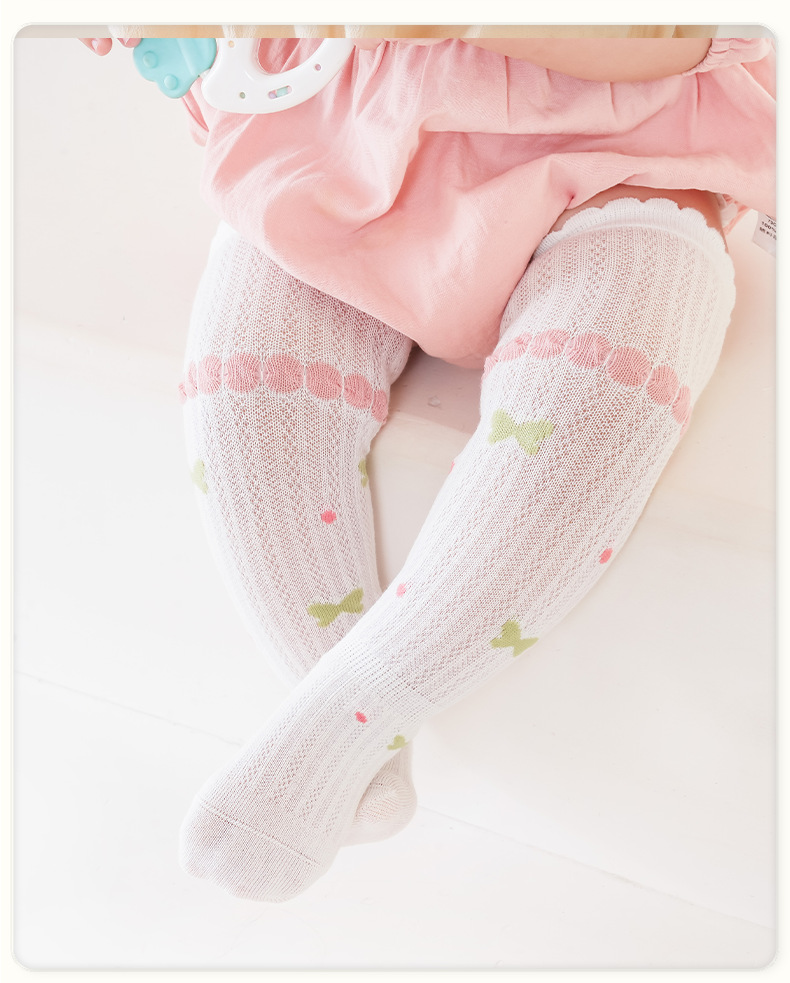 Liu Chengxing 봄과 여름 새로운 메쉬 아기 스타킹 얇은 통기성 만화 레이스 아기 무릎 뼈없는 면화 양말