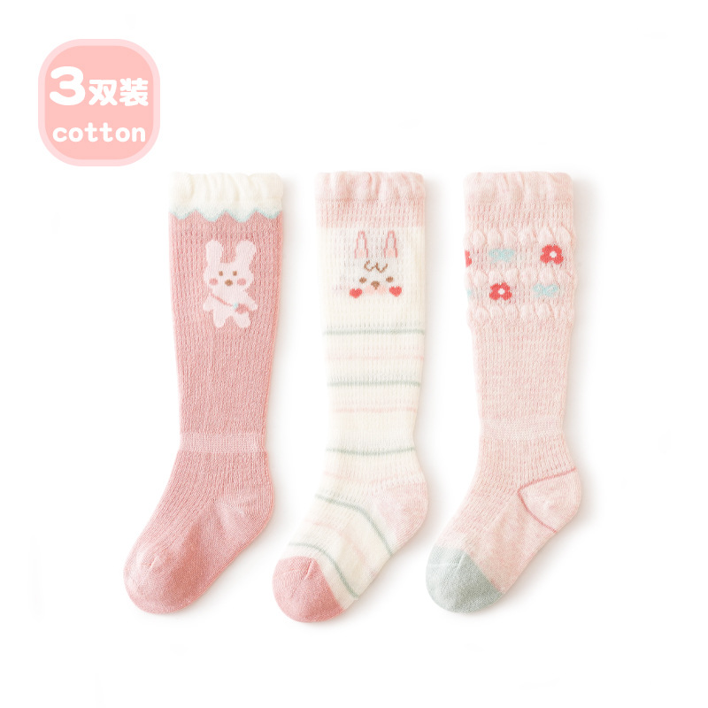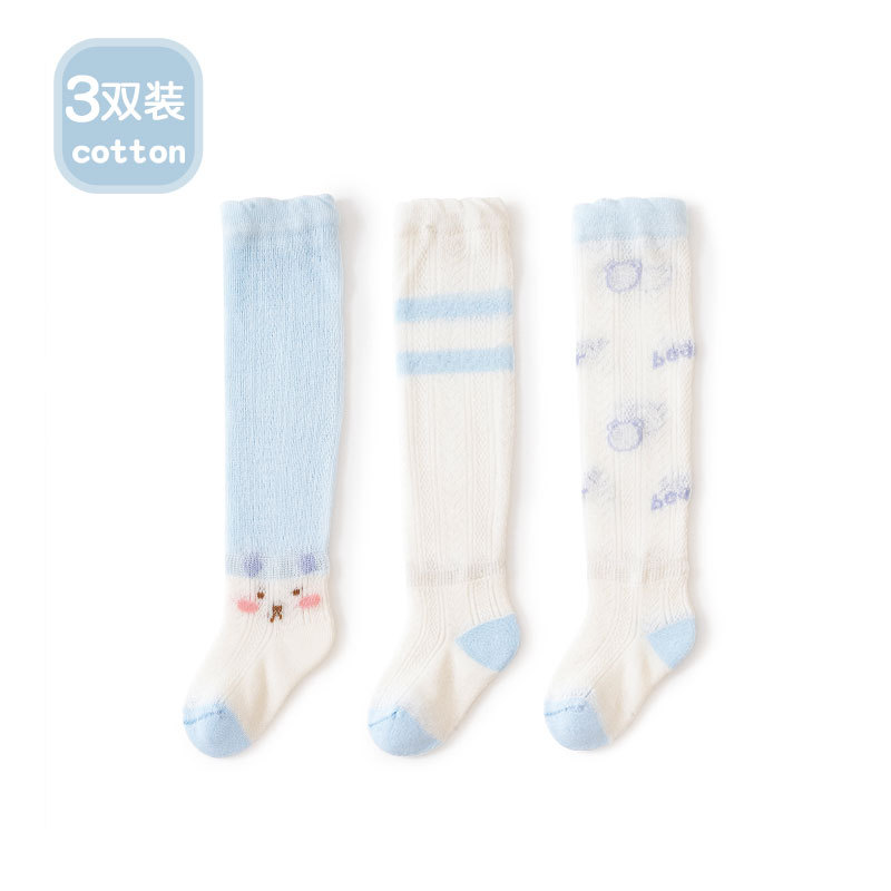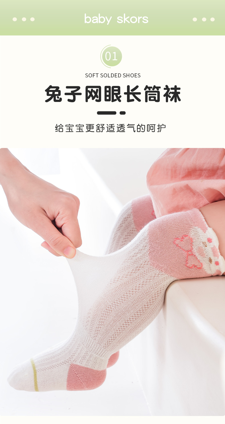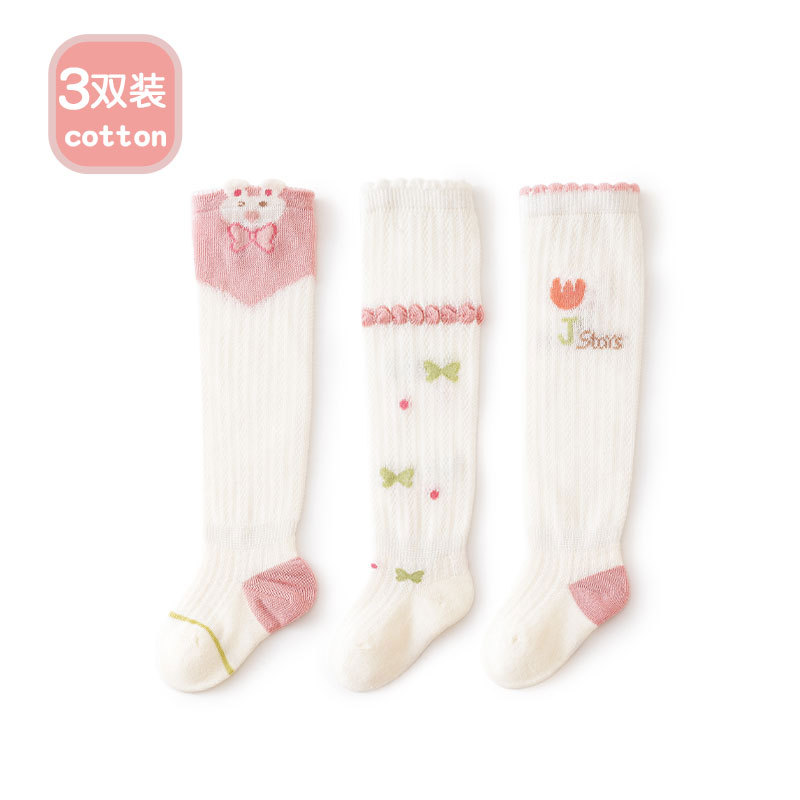 Liu Chengxing 봄과 여름 새로운 메쉬 아기 스타킹 얇은 통기성 만화 레이스 아기 무릎 뼈없는 면화 양말