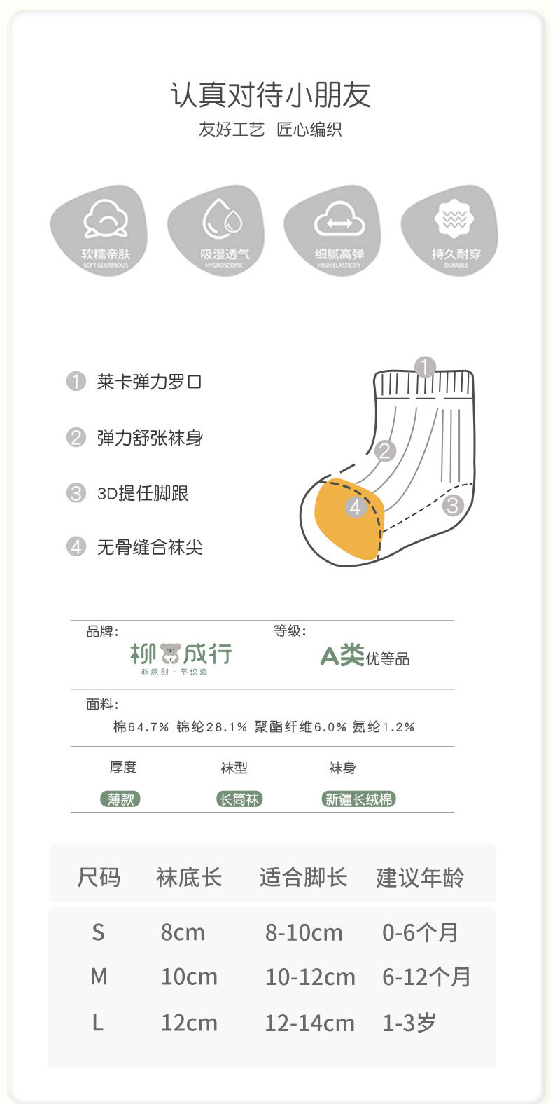 • S 크기 양말 바닥 길이 8cm (권장 0-6 개월)