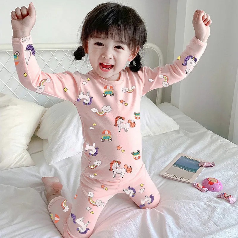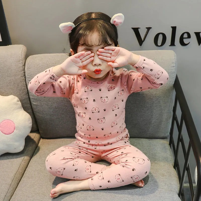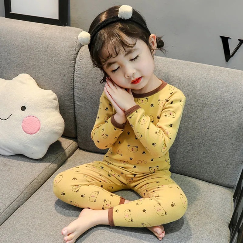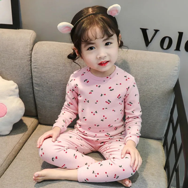 어린이 속옷 세트 새 소녀들의 가을 옷 긴 바지 어린이 난방 따뜻한 벨벳 바닥 잠옷 투피스 세트