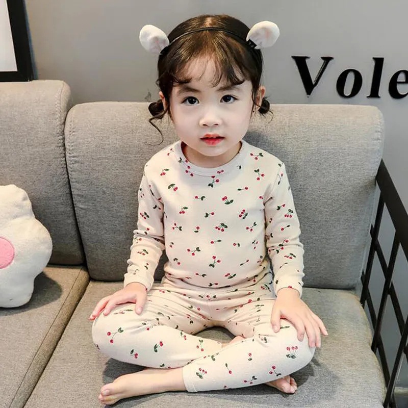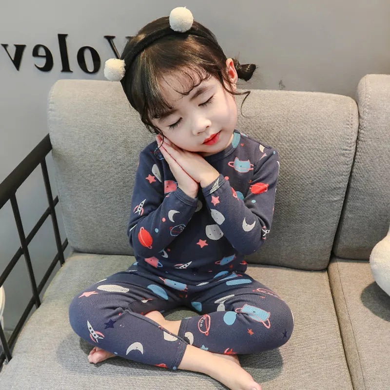 어린이 속옷 세트 새 소녀들의 가을 옷 긴 바지 어린이 난방 따뜻한 벨벳 바닥 잠옷 투피스 세트스토어 가기