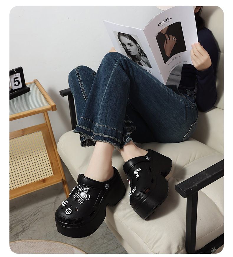 홀 신발 여성 두꺼운 단독 힐 아웃웨어 슬리퍼 패션 DIY 귀여운 만화 캐주얼 비치 샌들