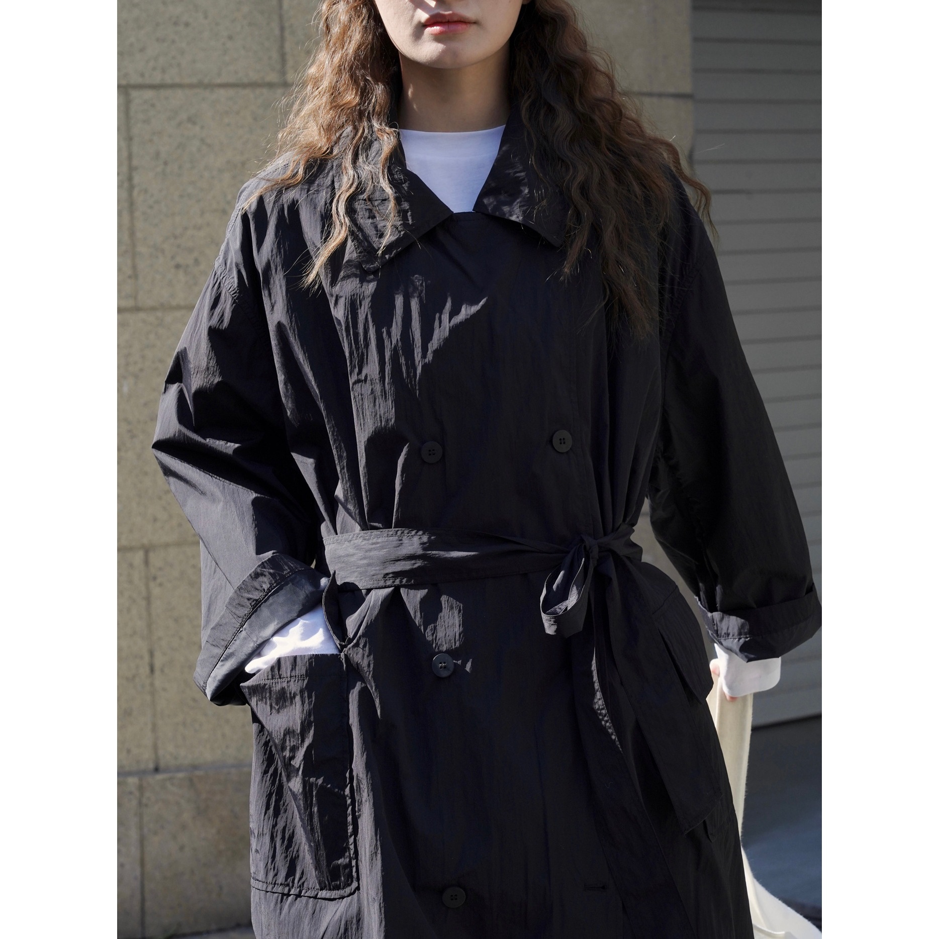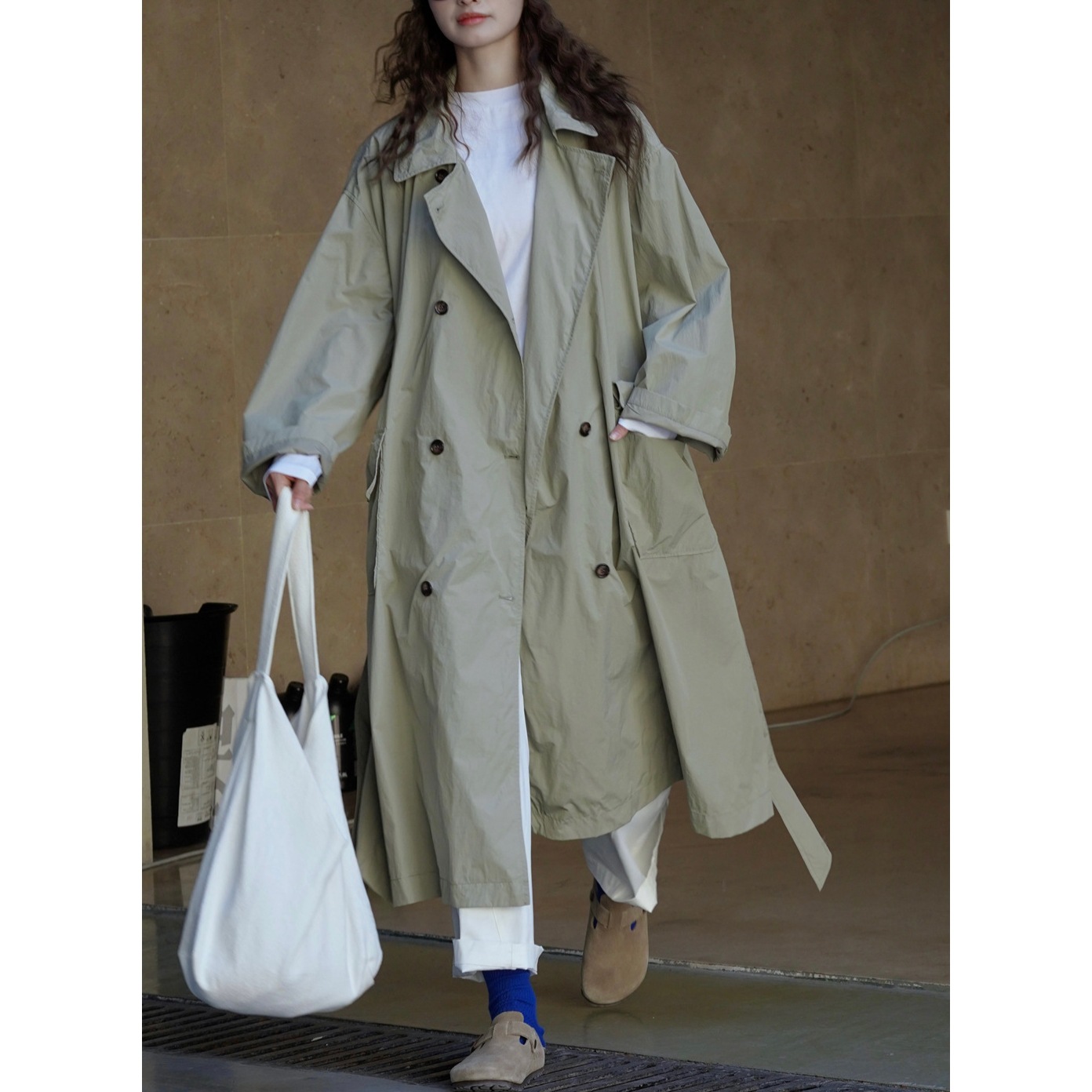 루푸 봄 새로운 일본 스타일 예술적 옷깃 대형 포켓 코트 느슨한 프로필 경량 캐주얼 긴 코트스토어 가기