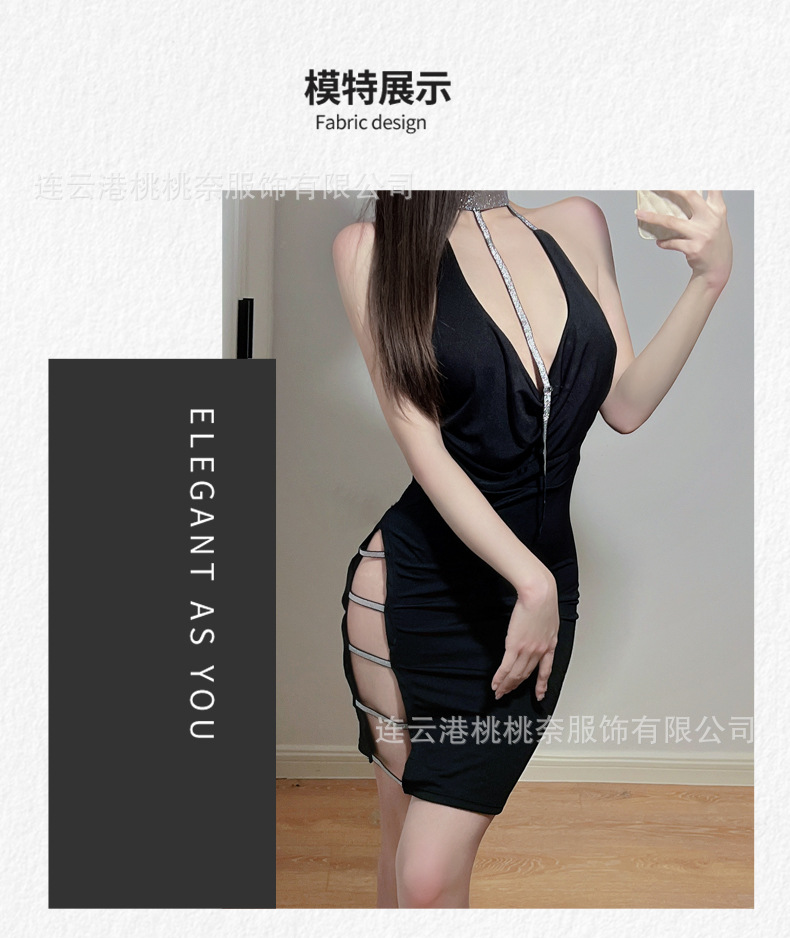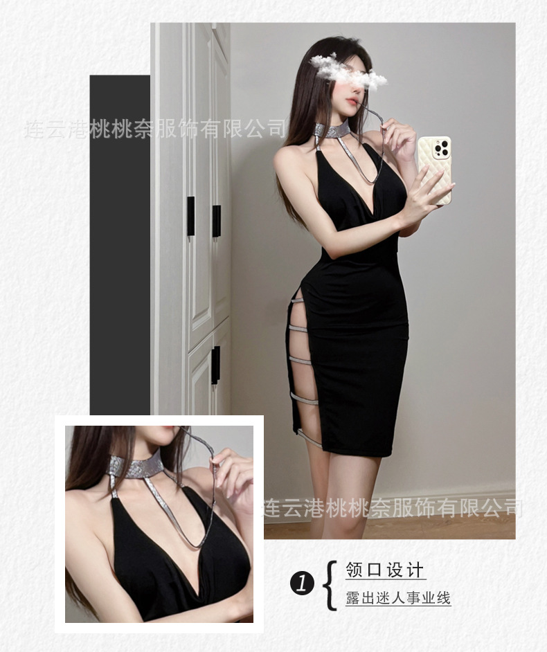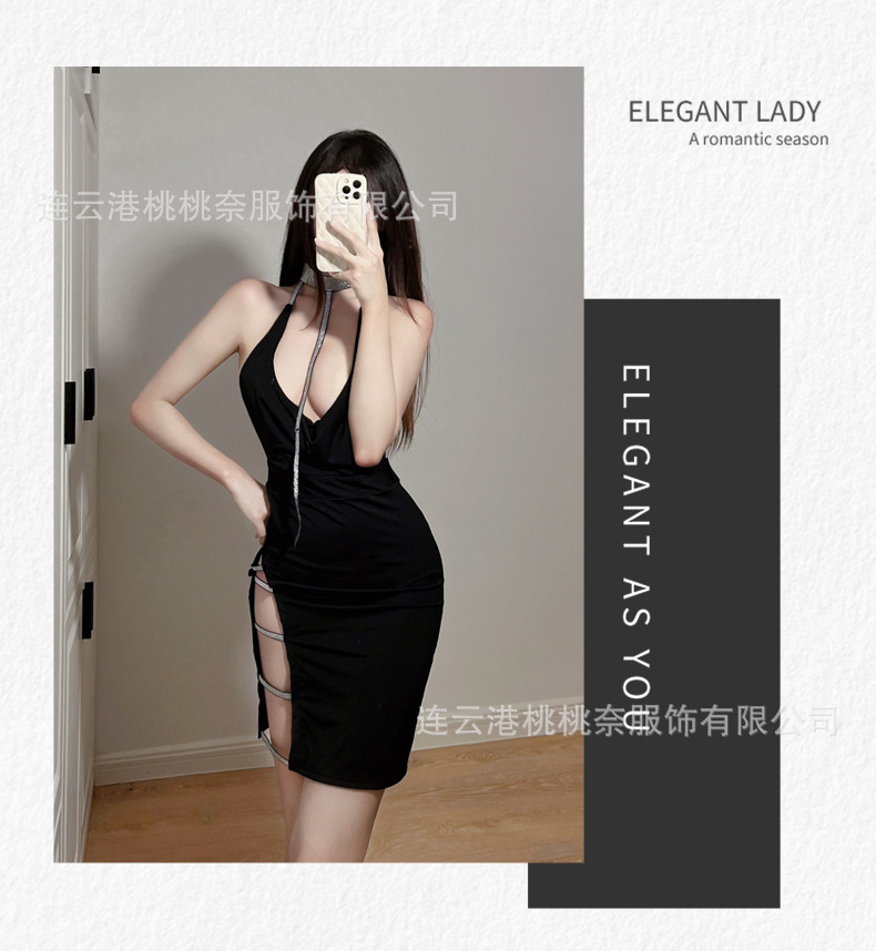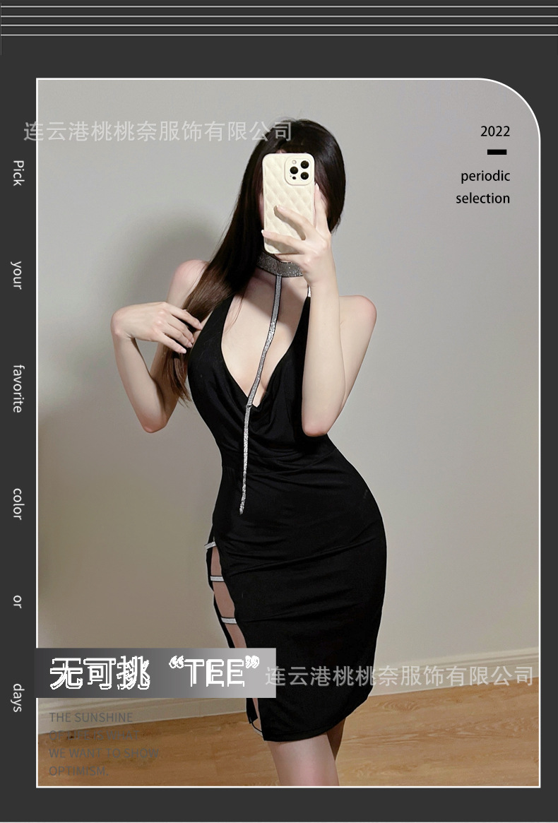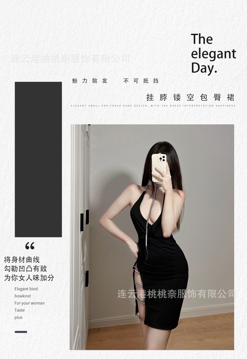 유럽과 미국 스타일의 섹시한 고삐 로우 컷 중공 원피스 스트레치 슬림 슬리밍 시스 스커트 섹시한 세트스토어 가기