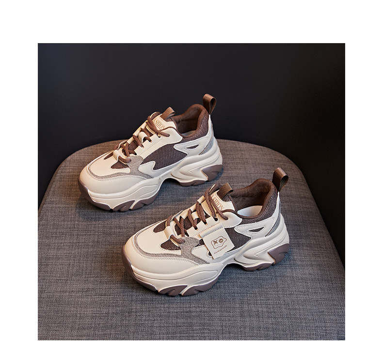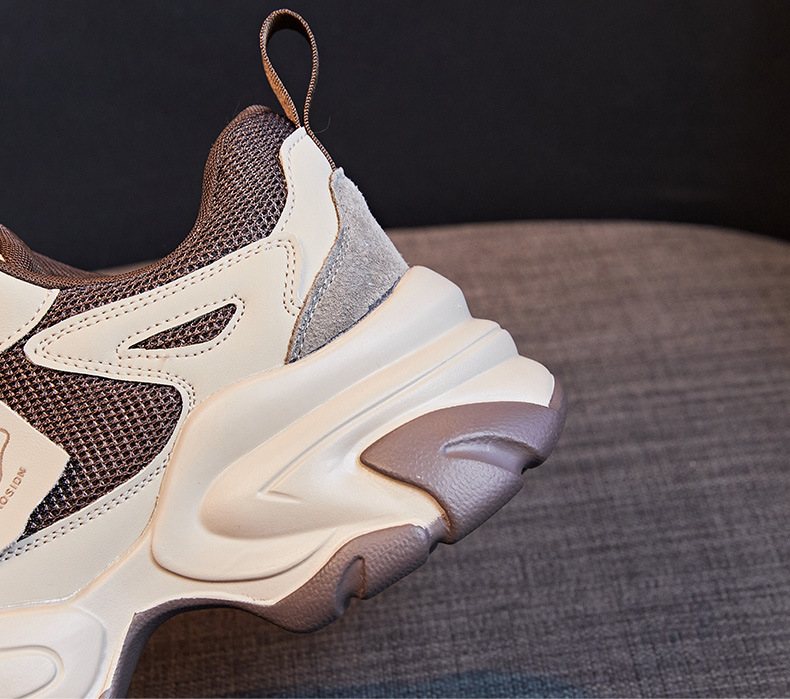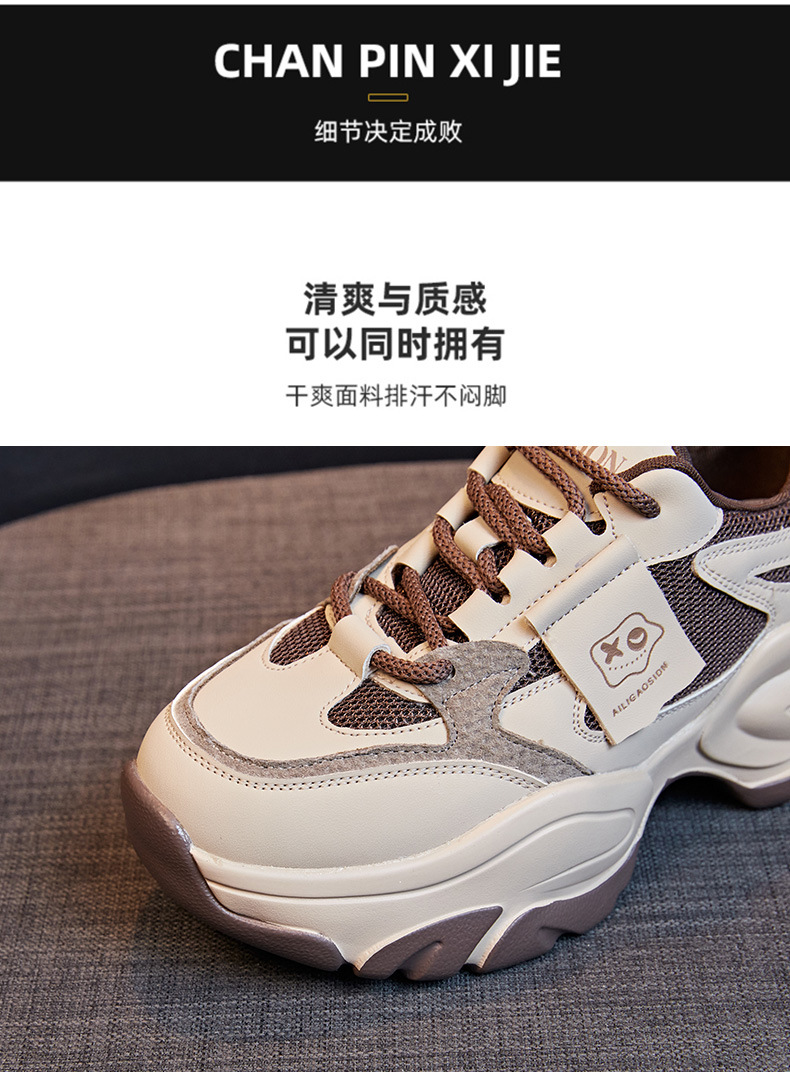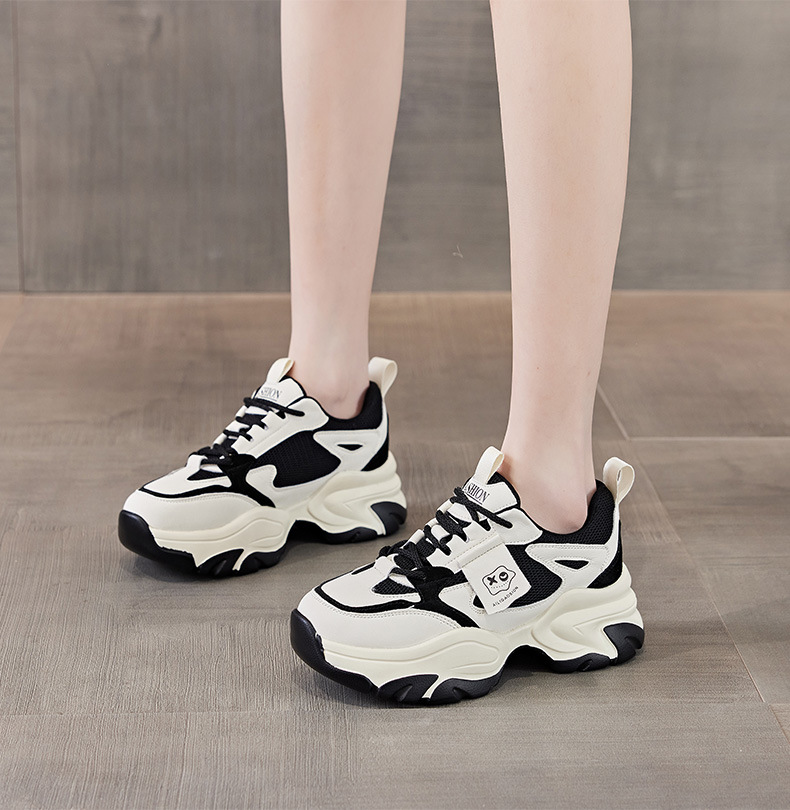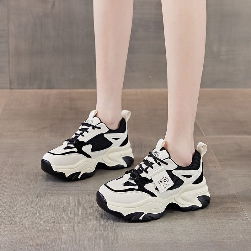 여성용 천연 가죽 메쉬 아빠 신발 2025 신상 여성 신발 두꺼운 밑창 가벼운 캐주얼 신발 다용도 운동화