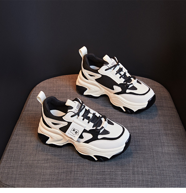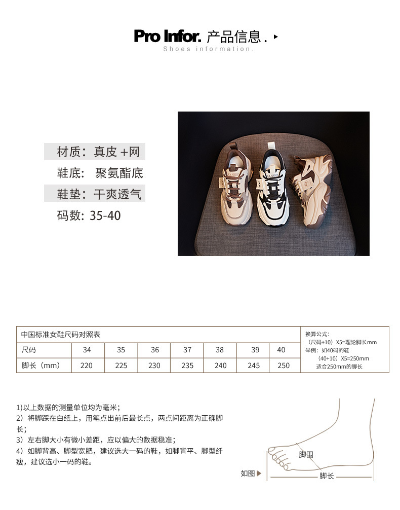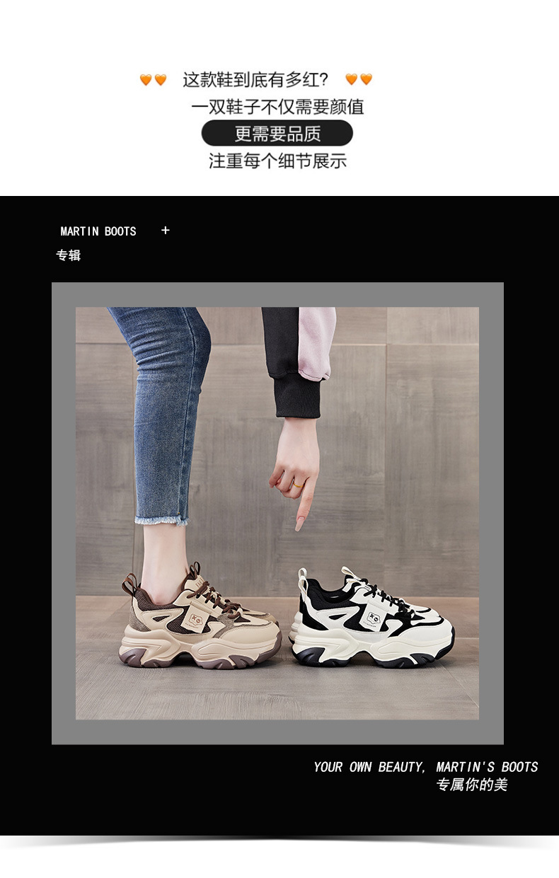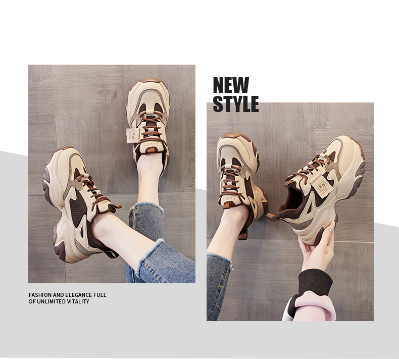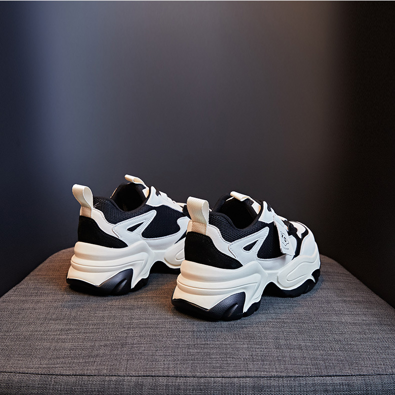 여성용 천연 가죽 메쉬 아빠 신발 2025 신상 여성 신발 두꺼운 밑창 가벼운 캐주얼 신발 다용도 운동화