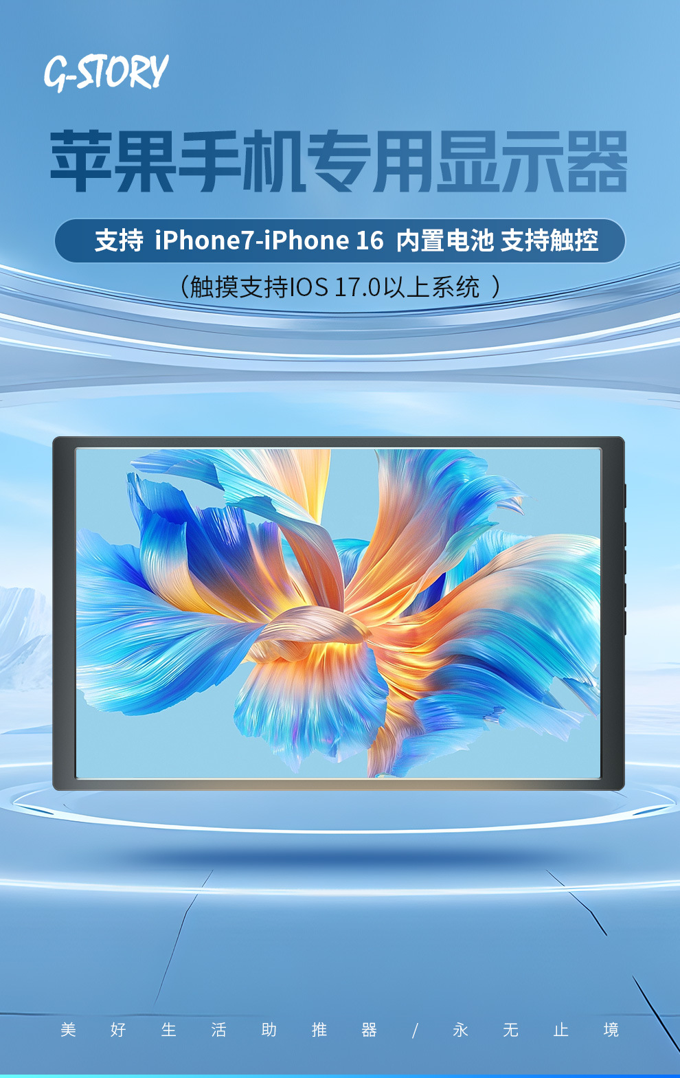 국경을 넘는 GSTORY 디스플레이는 애플 휴대폰을 위한 일선형 스크린 프로젝션을 지원합니다. 배터리 10.1inch 가죽 케이스 스크린 포함스토어 가기