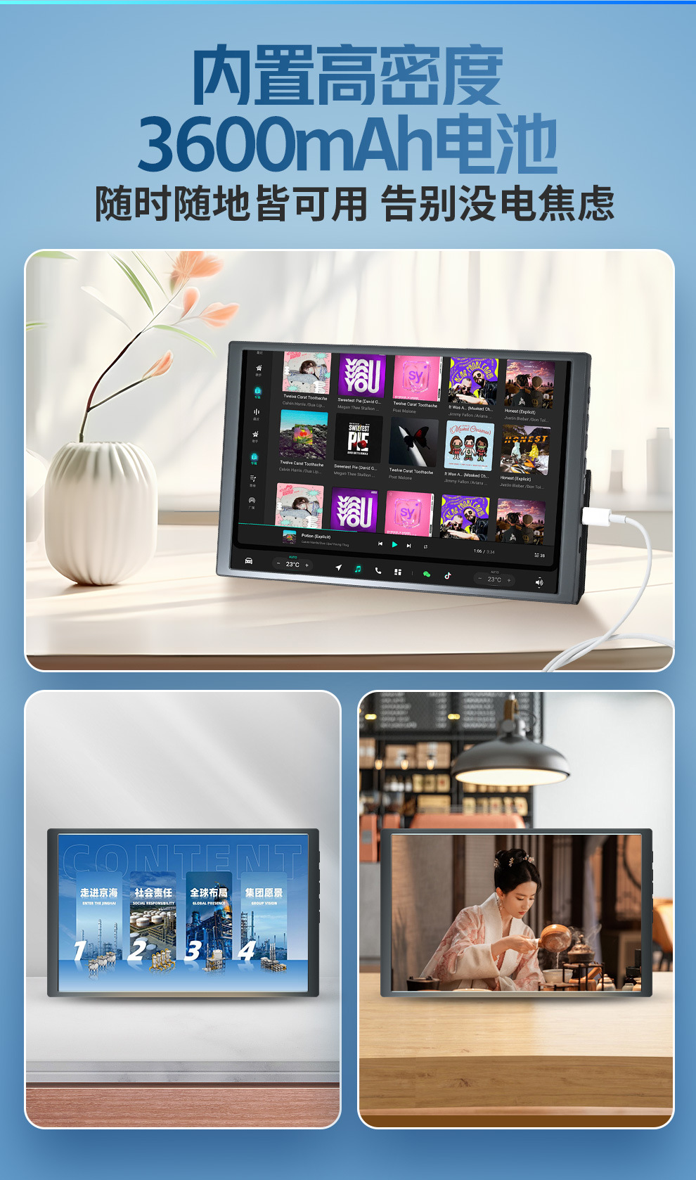 국경을 넘는 GSTORY 디스플레이는 애플 휴대폰을 위한 일선형 스크린 프로젝션을 지원합니다. 배터리 10.1inch 가죽 케이스 스크린 포함