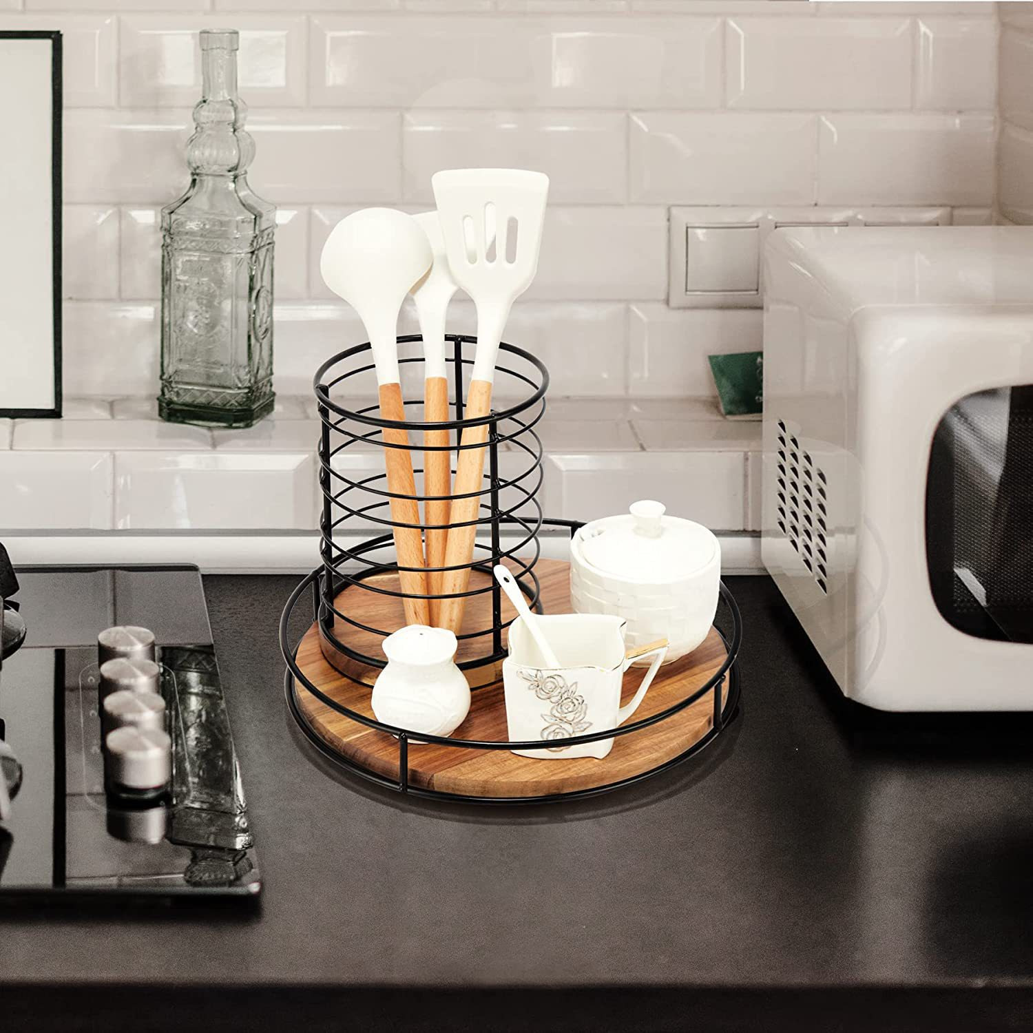 아카시아 나무 수잔 스토리지 랙 스틸 사이드 잡화 핏 랙 데스크탑 캐비닛 회전 단단한 나무 트레이스토어 가기
