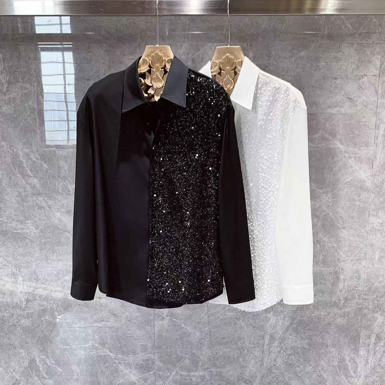 2025 새로운 디자인 틈새 긴팔 셔츠 남성 한국 스타일 트렌디 헤어 스타 멋진 아이스 실크 셔츠스토어 가기