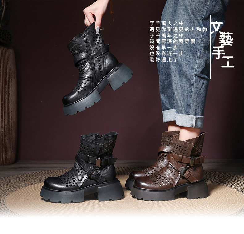 2024 정품 가죽 마틴 부츠 샌들 여성용 경량 하이 탑 여성 신발 복고풍 수제 짧은 부츠 잘 생긴 오토바이 여성 부츠스토어 가기