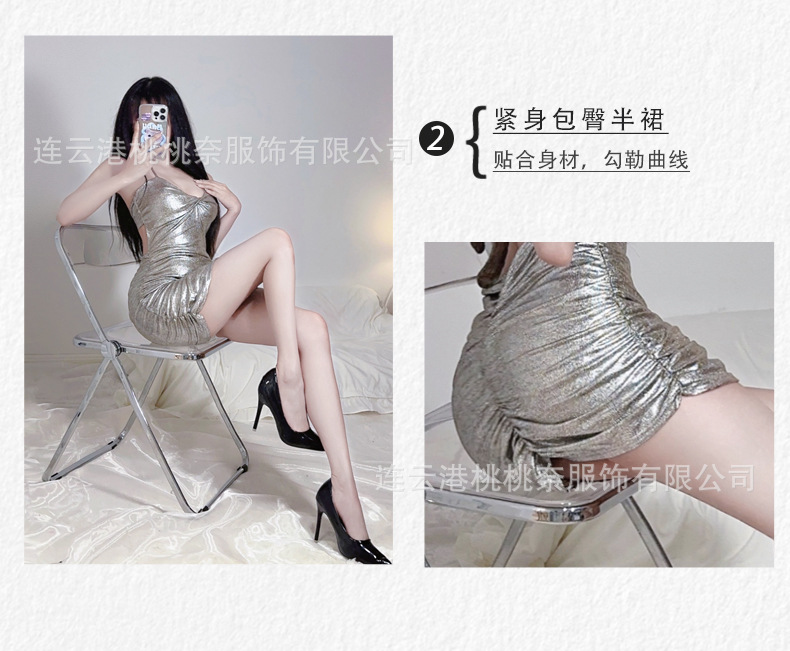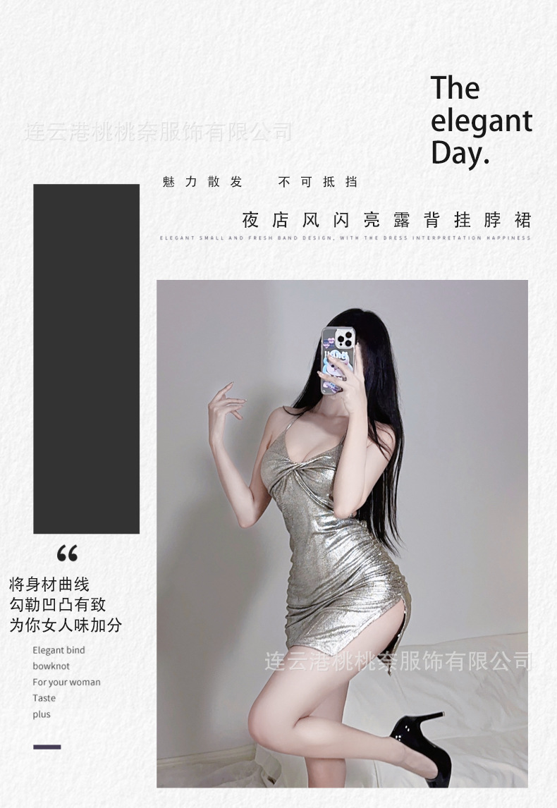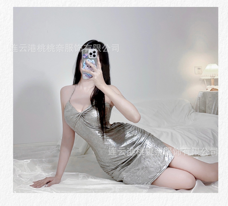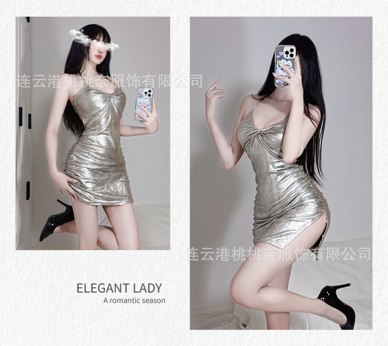섹시한 잠옷 여성의 여름 아이스 실크 얇은 섹시한 소녀 매혹적인 체인 서스펜더 원피스 홈웨어 노출 세트스토어 가기