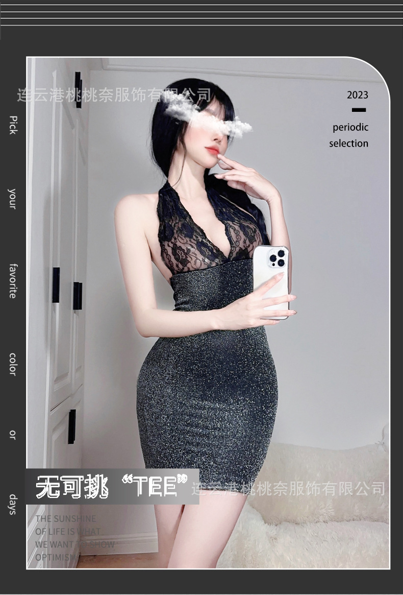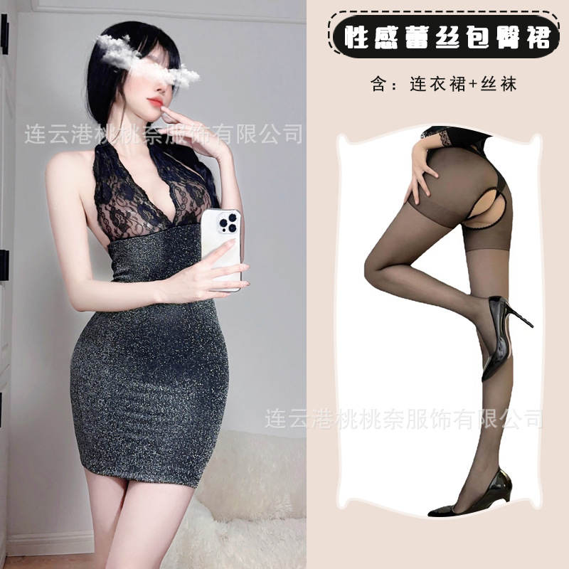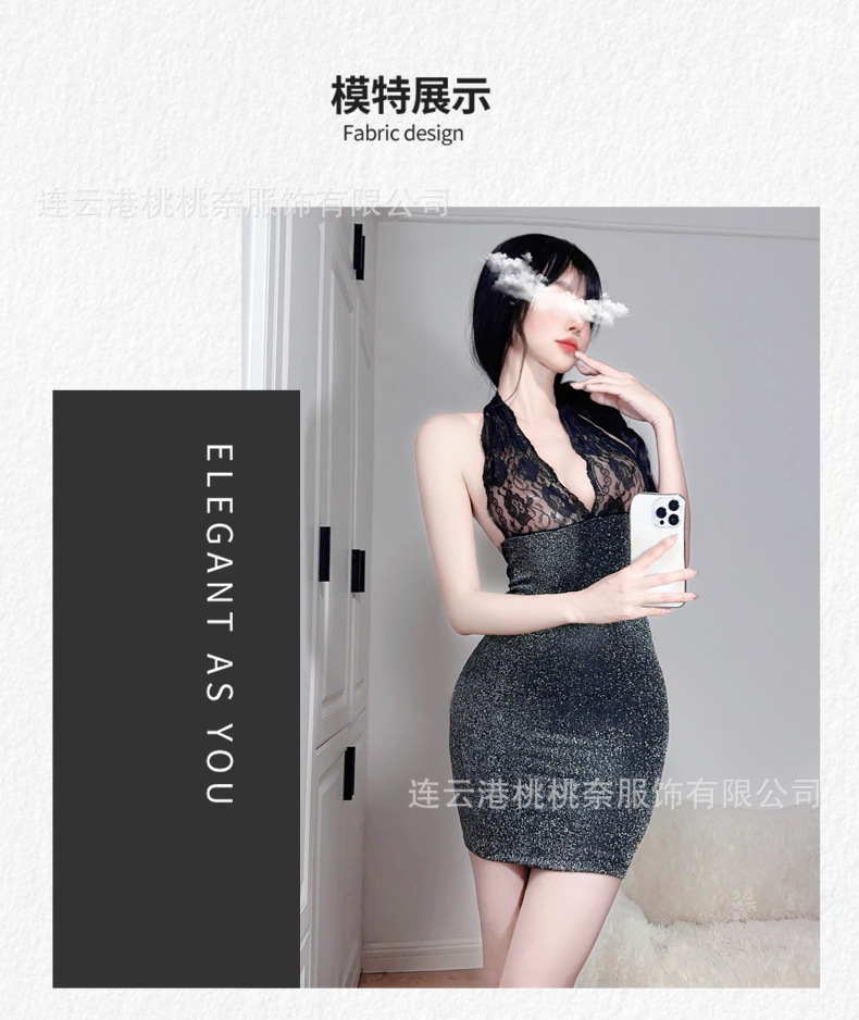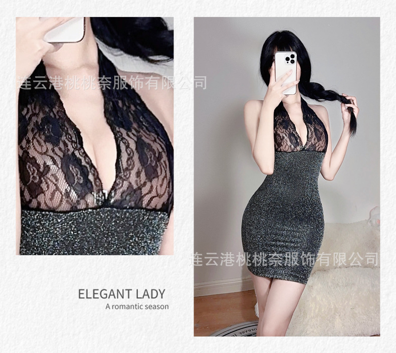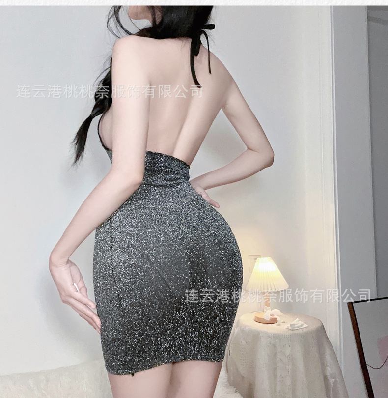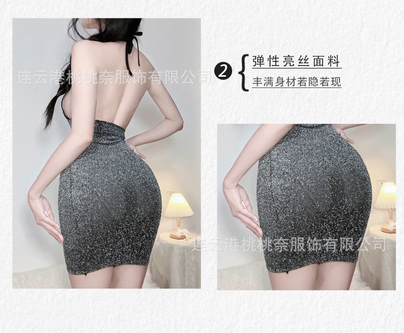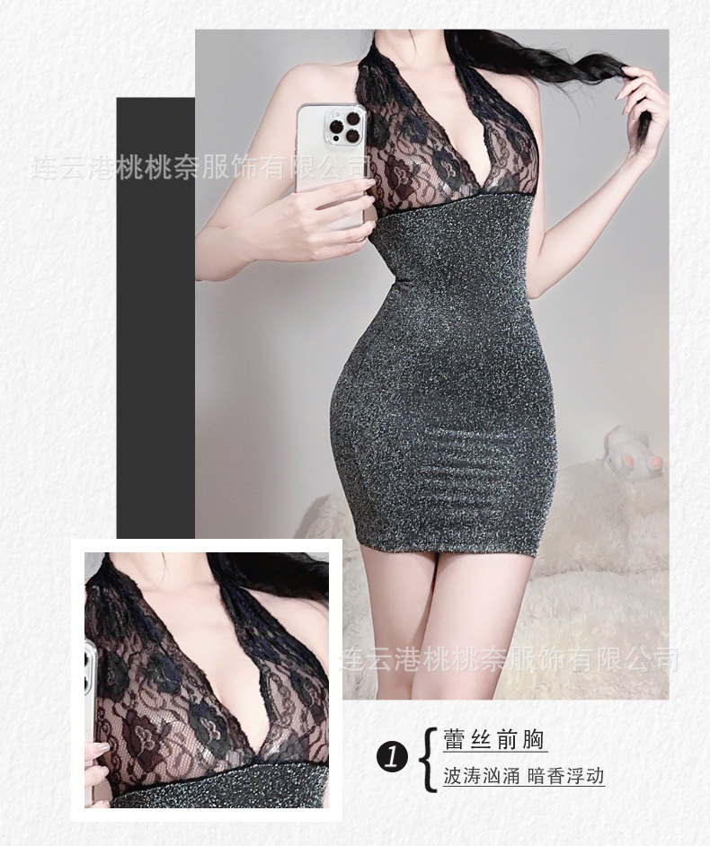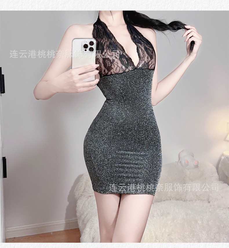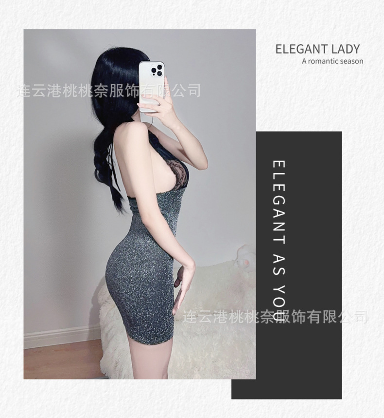 섹시한 나이트 클럽 골드와 실버 실크 레이스 반짝이는 칼집 등이없는 나이트 드레스 포장 가슴 관점 고삐 여성 섹시한 세트스토어 가기