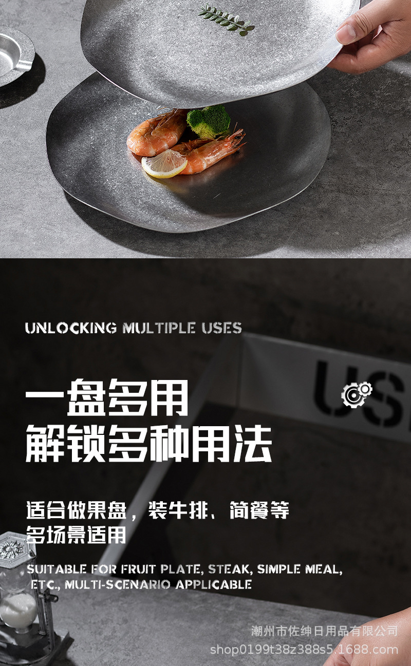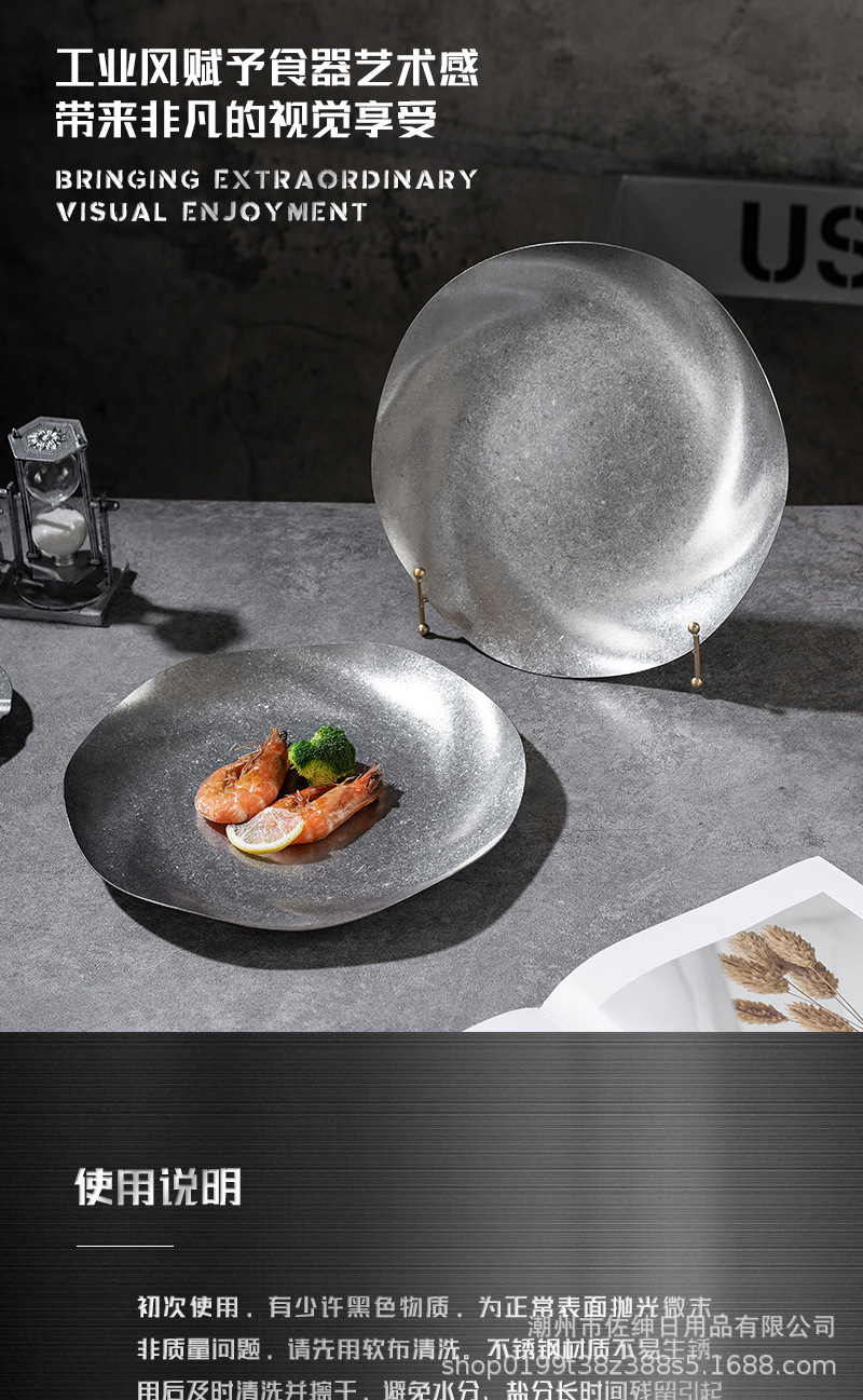 304 스테인레스 스틸 빈티지 산업 스타일 디스크 하이 엔드 아트 플레이트 바베큐 냄비 레스토랑 서양 레스토랑 요리스토어 가기