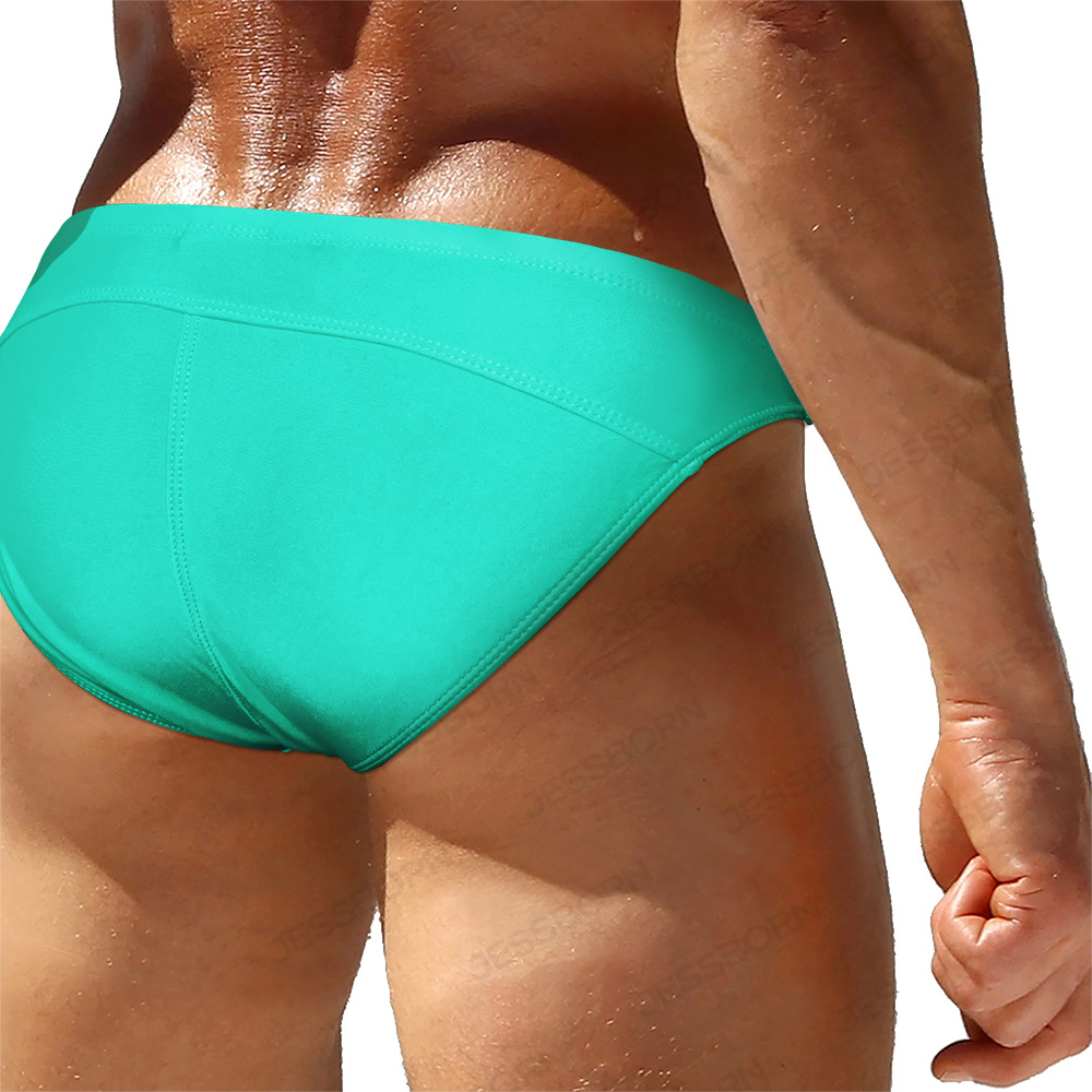 JESSBORN 남성용 싱글 메탈 버클 사이드 슬릿 삼각 수영복 나일론 단색 패션 온천 수영장 수영복